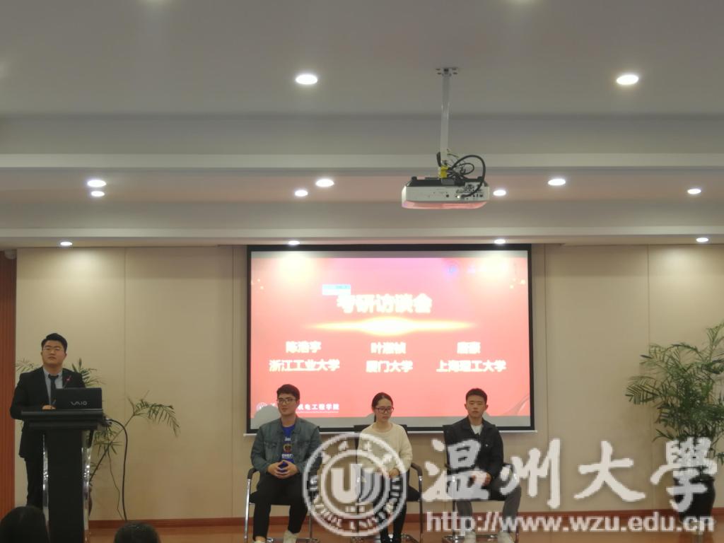 笃行社的成立仪式结束后,随即开展了笃行社第一期活动——考研访谈,由第一届笃行社社员陈浩宇(被浙江工业大学录取)、叶淑祯(被厦门大学录取)、唐豪(被上海理工大学录取)为大家分享自己在2019考研成功上岸的经验。三位同学分别分享了自己的考研之路并详细解答了学弟学妹们目前在考研方面遇到的问题。
