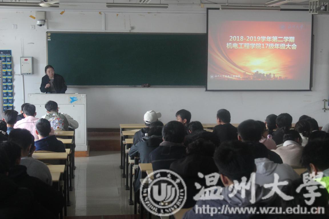 2019年3月6日下午,为使同学们在新学期更快融入到学习当中,提高同学们的学习积极性,树立正确的学习目标,从而更好地加强学院的学风建设,开云体育 在7D402教室开展了17年级2018-2019学年第二学期新学期年级大会暨本科生课外学术导师交流会。学生科孙双老师、胡施施老师、班主任綦法群老师、本科生课外学术导师15国际化龚玲艳同学以及全体17级学生参加了本次活动。