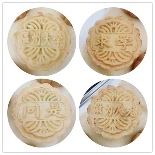 月饼是中秋团圆必不可少的美食。在活动现场,王晓倩老师一步步教给大家制作月饼的做法,从取出浸泡在油里的新鲜咸鸭蛋黄开始,饼皮和面、称重分割、包馅压模、烤制冷却包装,并印上带有“温州大学”、“求学”、“问是”、“敢为人先”等字样的图案,经过一阵忙碌,托盘上便整齐排列了一个个待烘焙的月饼。看着自己亲手制作的月饼,成就感油然而生,老师们纷纷拿出手机与自己的作品来个亲密合影,整个活动在一片欢声笑语中结束。