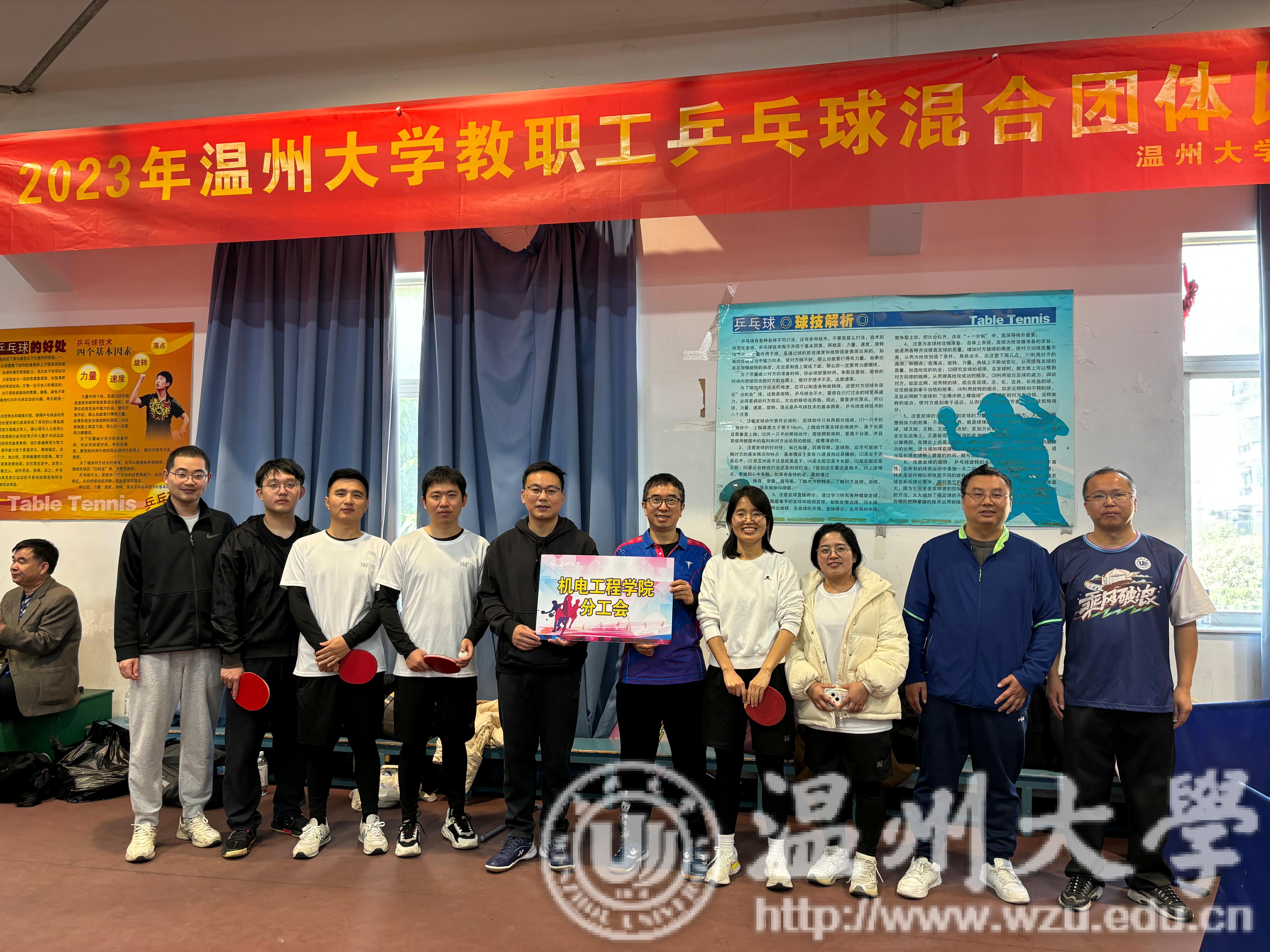 2023年12月2日,温州大学教职工乒乓球男女混合团体比赛在学院路校区举行。开云体育 经过选拔,积极组队参加。男女选手们分别是:李勇(大)、李勇(小)、陈贤、郭剑、信冬群、林博远、张锐;陈亚绒、王晓倩、耿燕飞。他们以饱满的热情和昂扬的斗志参与其中,为学院争光。