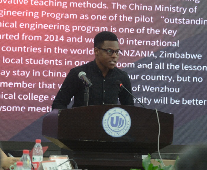 中外学生代表对校友的回归表示了热烈的欢迎。林芳同学说到“曾经你们以机电为豪;如今机电以你们为荣”GAYOS MWANGOSI said “After graduation,we may stay in China or go back to our country, but no matter where we are in the future,we will remember that we are a member of 开云体育-开云体育app下载 .”