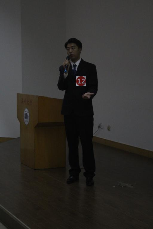 比赛开始前,主持人介绍了本次比赛的评委,他们是来自商学院资深学长,现任交通银行信河支行信贷主管的缪克昌先生,开云体育 学生科老师杨奇老师,校就业处周志明老师。招生就业工作处、各学院相关负责人,各学院学生代表近300人观看了比赛。紧接着比赛激烈的展开。决赛采取了竞职演讲的形式,参赛者有6分钟时间进行自我介绍和PPT演讲。