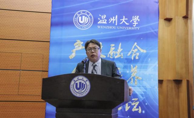 单位代表瑞立集团进行了发言,他提到,在“大众创业、万众创新”时代背景下,无论是从城市和产业转型要求看,还是高教需求和发展变化看,人才、技术和大资本之间彼此需要、互为支撑的稳定关系,打造持久的核心竞争力势在必然,也是城市发展难题的有效破解之道。与温州大学共同推进产教融合的发展,是提高竞争力的最佳选择,并希望在未来能深化合作,共同发展。