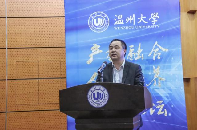 温州大学副校长方益权发表了讲话。他讲到,产教融合不仅是推动产业、专业、创业深度融合的一种有效途径,而且有效的贯彻发扬了十九大精神。我校在此方面进行了一系列积极而有益的探索并取得显著成效。现如今,温州大学高水平应用型大学建设和产教融合已经走在全国的前列。