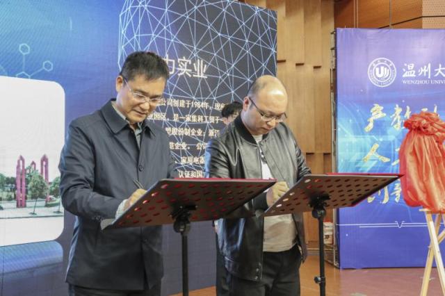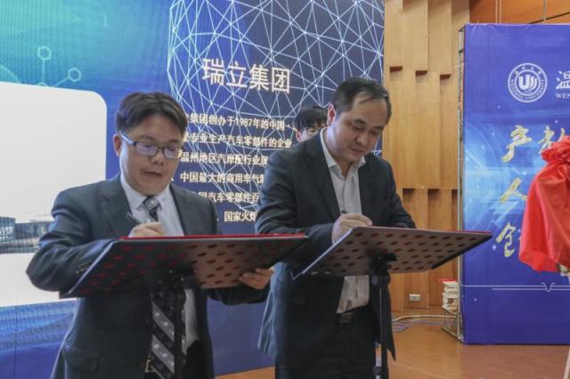首先是温州大学产教融合中心主任全力、开云体育 院长周宏明上台与瑞立、核心、春风动力,万控智造四家企业进行产教融合示范中心的签约及授牌仪式。