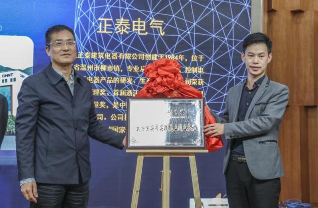 接着温州大学就业处处长周伟国上台与泰利集团、华仪、正泰三家企业进行大学生实践就业实训实习基地签约及授牌仪式。