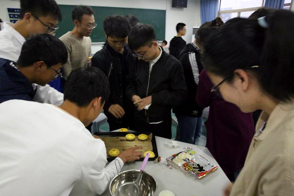 同学们在王晓倩老师的指导下,学会蛋糕、蛋挞的制作方法。大家一开始手忙脚乱,但是在王晓倩老师的悉心指导下,不一会儿都变成了小有经验的蛋糕烘焙师。在制作蛋糕的同时,同学们还积极与自己的老师讨论生活上的困难以及学习方面的问题,使得老师更加了解学生们的日常,加深了彼此之间的情谊。经过一段时间的等待,蛋糕和蛋挞相继出炉,空气中弥漫着蛋糕的香甜气味。