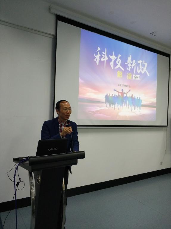 本次讲座,洪振杰处长从以下四个方面全面解读了科技新政的内容:科研项目资金管理新政、科研成果转移转化新政、温州市人才新政与科技新政、温州大学科技新政。洪处长结合学校科技新政的新办法,为在座的老师和学生讲解了学校对科研经费支出与审批管理、横向与纵向项目管理、配套经费等,改革后的管理办法。从洪处长对科技新政改革的解读中,我们深刻感受到学校出台的各项科技新政对广大科研工作者的鼓励,学校也希望通过科技新政来促进各学科的发展。