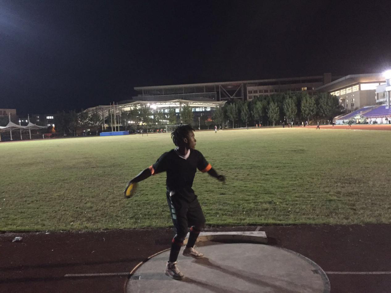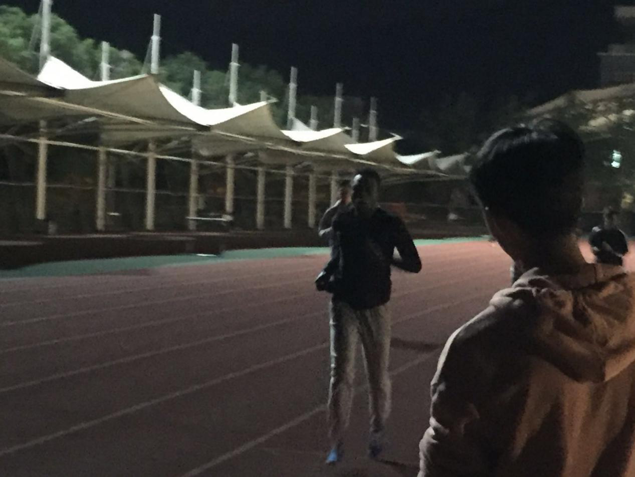 留学生们也积极的参与了本次筹备,在操场上一丝不苟的训练着(如图:开云体育 文体部名誉部长Alfred正在参加800米的训练)。
