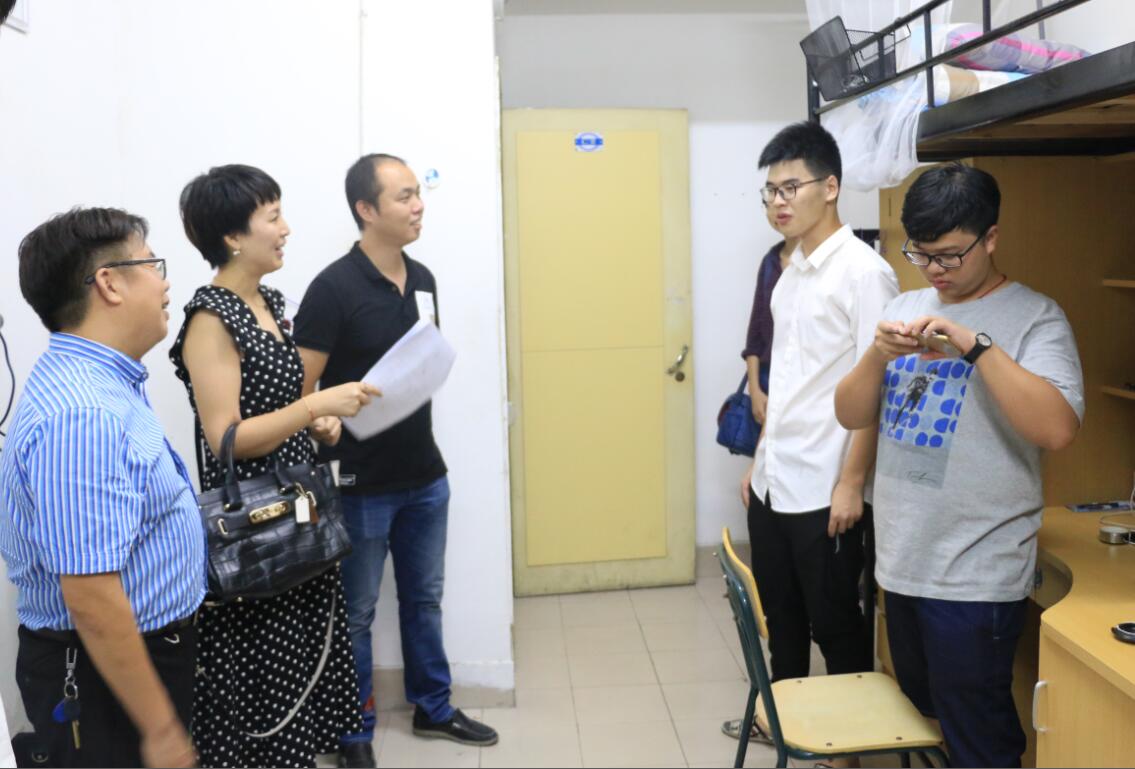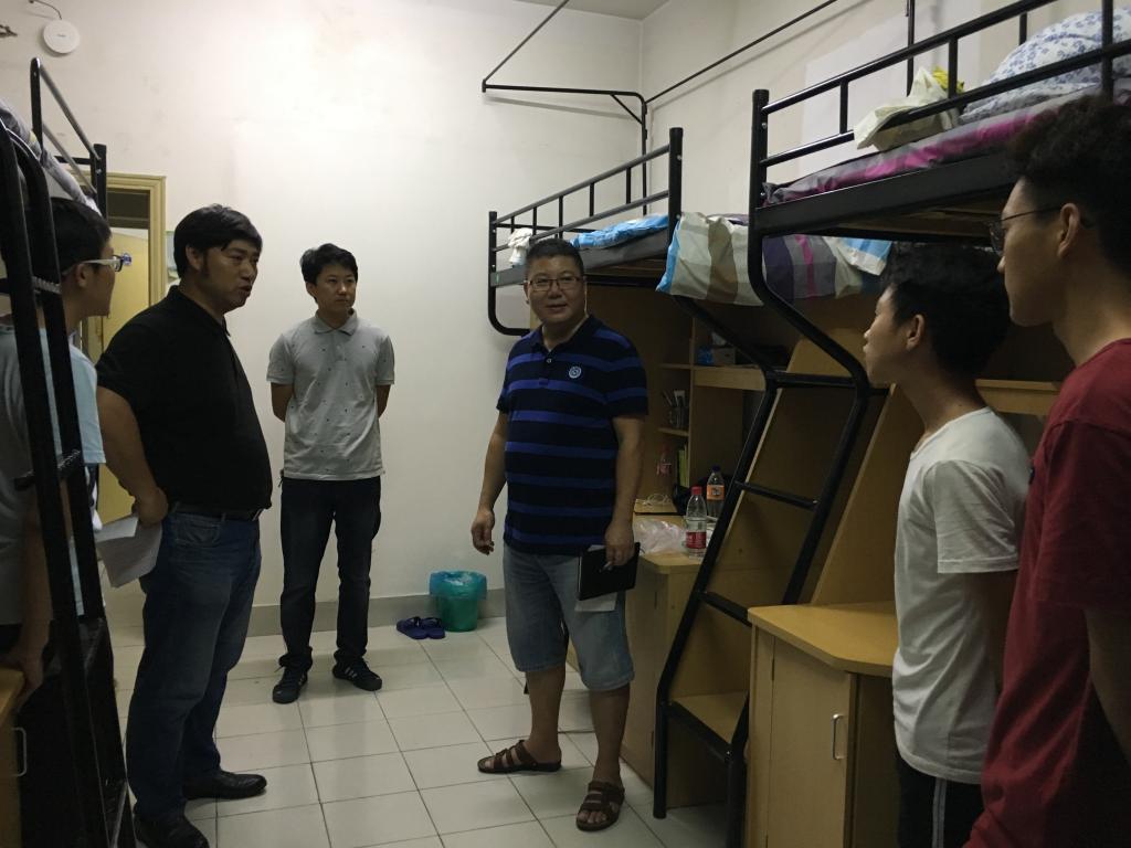 9月19日晚6:00,在学院党总支书记周荣、院长周宏明、副院长冯爱新、副书记李密、副院长姜锐的带领下,开云体育 各专业老师、新生班主任、寝室导师及班主任助理到寝室看望2017级全体新生本科生及研究生。