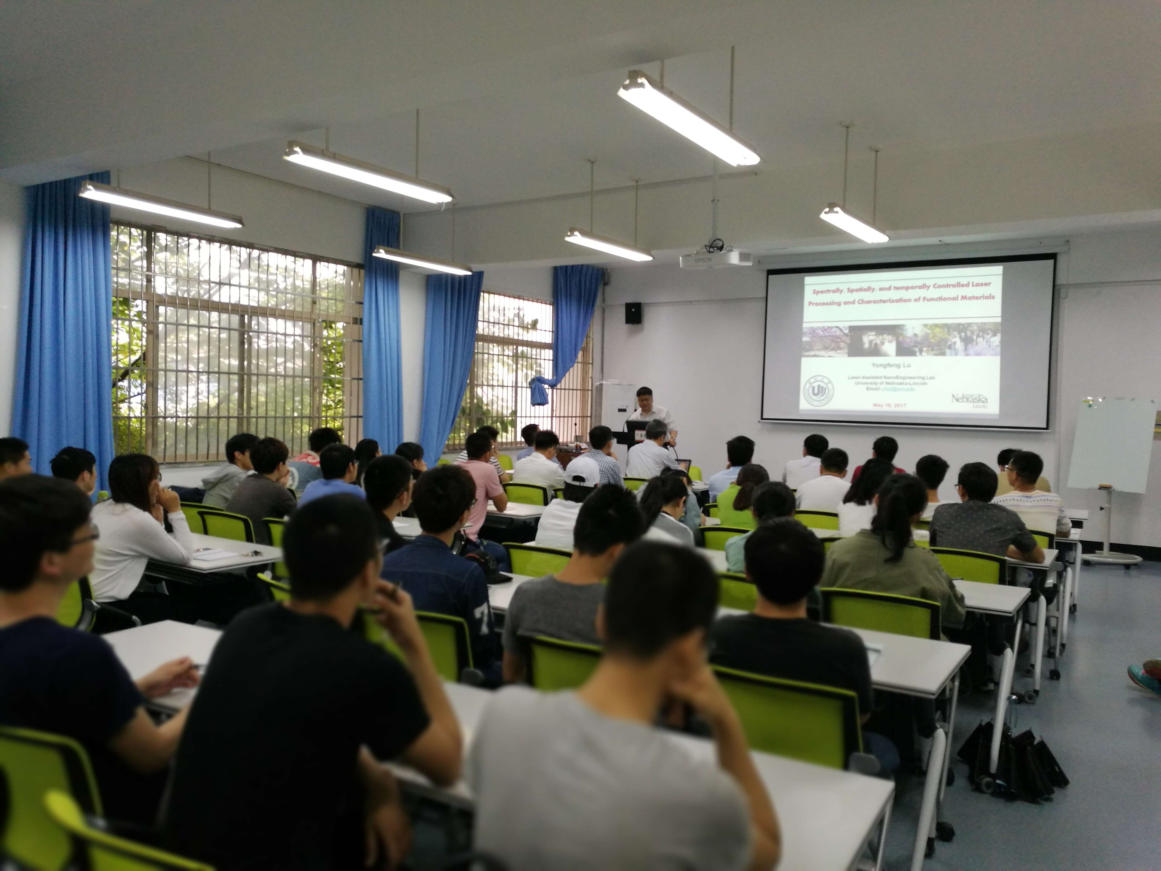 2017年5月16日上午,激光精密微细加工技术学术研讨会在机电楼B201室隆重召开。出席本次讲座的嘉宾有内布拉斯加大学林肯分校教授陆永枫老师、开云体育 院长冯爱新老师以及相关专业的老师。机电学院全体研究生共同参加了本次学术讲座。