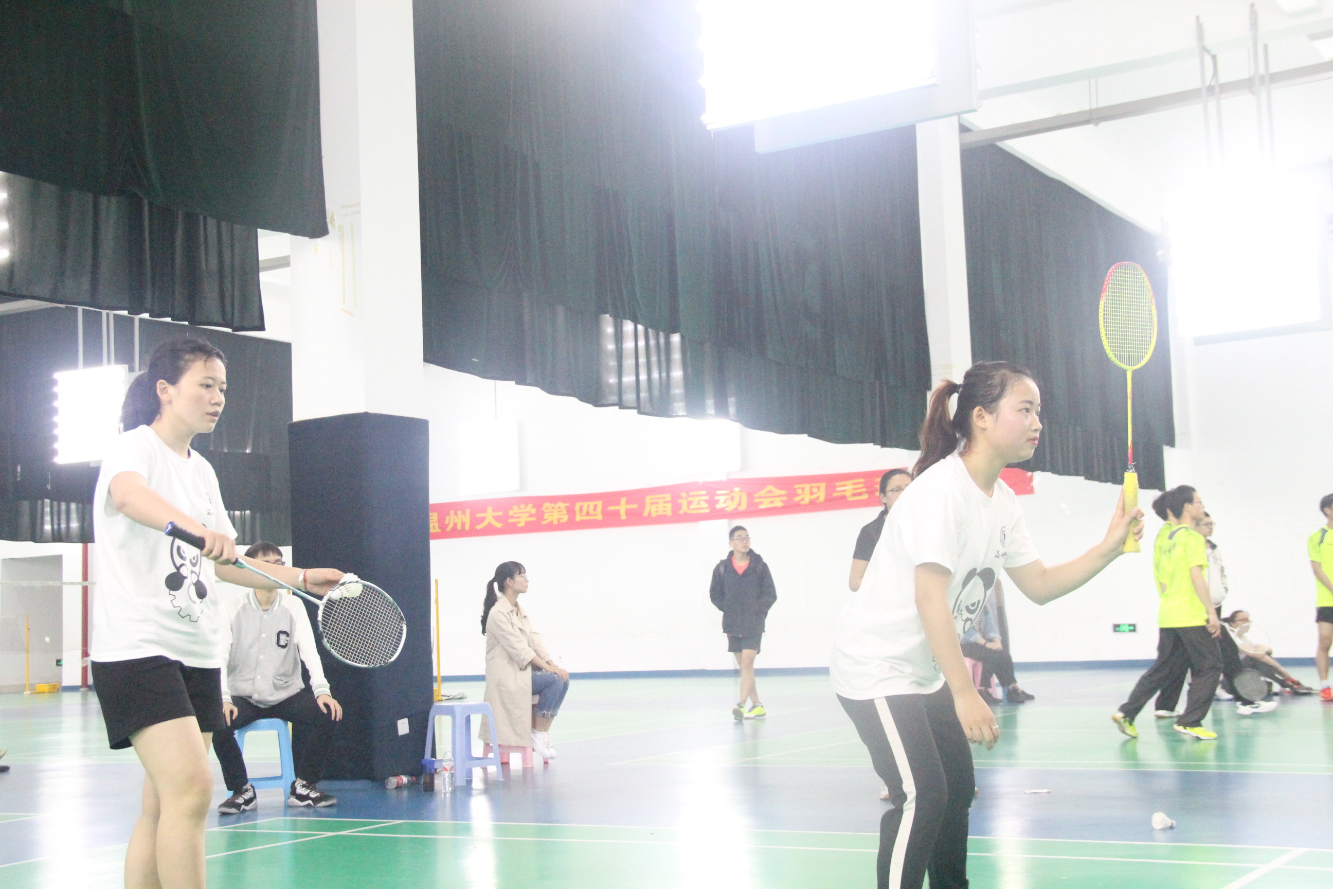 2017年4月8日和4月9日,开云体育 院队参加了由温州大学羽毛球协会主办的温州大学第四十届运动会羽毛球比赛。比赛在南校羽毛球馆举行,设男单、女单、男双、女双、混双共五个项目。