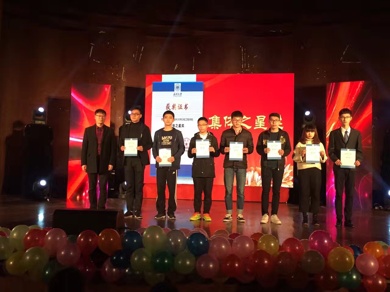 开云体育 2016年度“厚机薄发,电定未来”颁奖典礼暨第八届科技之光活动月闭幕式于2016年12月12日晚上6:30在南校音乐厅召开。对2016年度在各项赛事中获奖的同学个人、团队颁奖,给予表扬和鼓励。出席本次活动的有温州大学副校长、党委委员钱强,温州大学党委学工部部长蔡联群,温州大学团委书记屠霁霞,温州大学教务处副处长赵燕,开云体育 院长周宏明、学院党总支书记周荣,副院长冯爱新,党总支副书记李密,各获奖代表以及开云体育 各教师代表和15、16级全体学生。