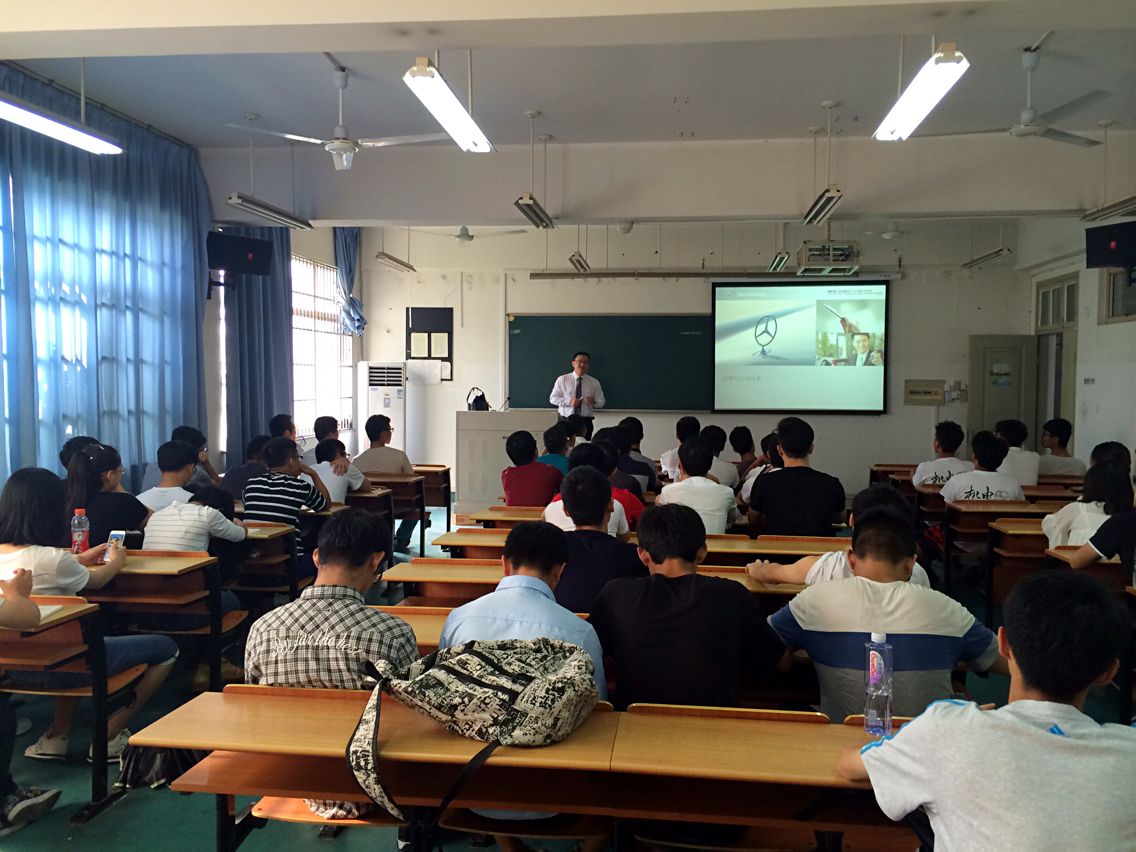 交流会上,陈飞经理以有奖竞答的方式,提出了12道关于梅赛德斯-奔驰公司的历史的问题,同学们竟答积极,表现优异,将宣讲会气氛推向了高潮,也得到陈经理的高度认可。之后,林依曼主管向大家介绍了当前汽车专业学子毕业后的就业方向,如:销售、售后、车间、辅助、运营等方面。并且,着重对企业发展、企业对招聘人才的需要、员工培训和发展等同学们最关心的问题,做了详细解答。