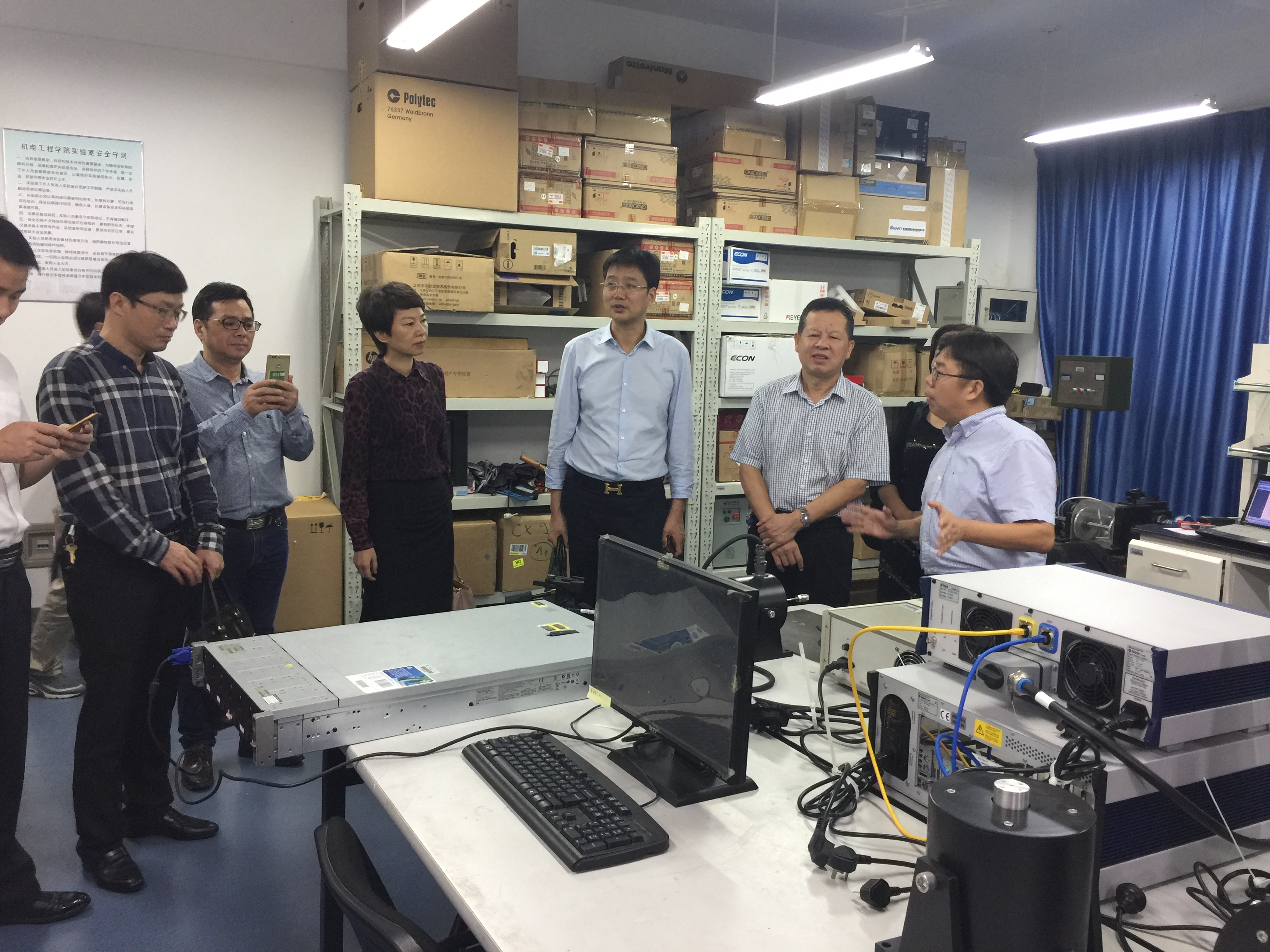 2016年10月18日,瑞安市政协主席白一帆、副市长陈荣臻一行10余人莅临开云体育 参观访问。学院院长周宏明教授、实验室主任林礼区陪同参观。