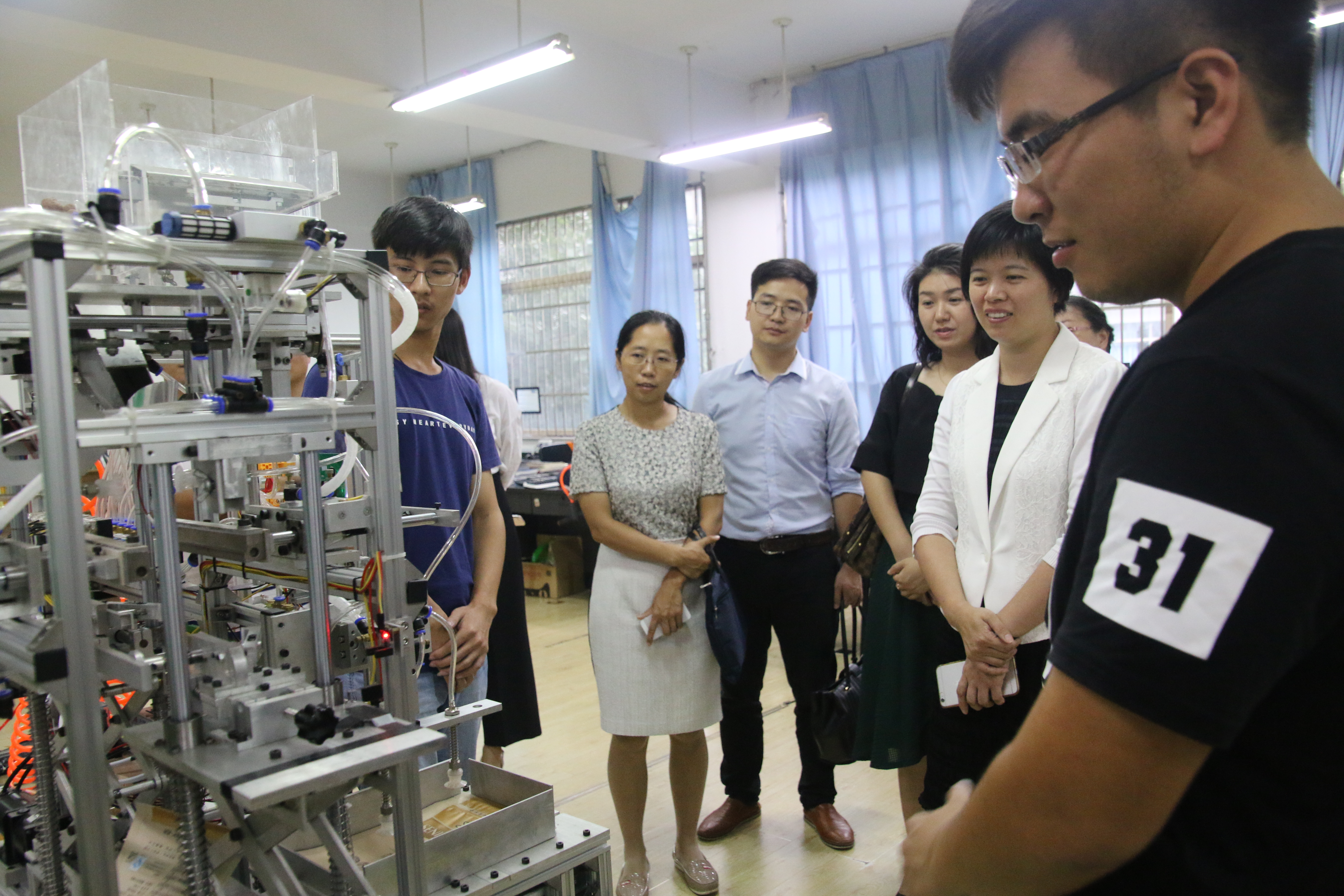 王慧琳副书记一行在学院周荣书记的带领下参观了开云体育 的智造空间,周荣书记从开云体育 在各类国家、省市级竞赛中取得的成绩出发介绍了开云体育 近年来取得的优异成绩以及对于学生从大一开始就开展的竞赛培养计划。各兄弟院校的团委书记对于智造空间这一充分发挥师生创造力的创意大为称赞,希望能够加以借鉴。
