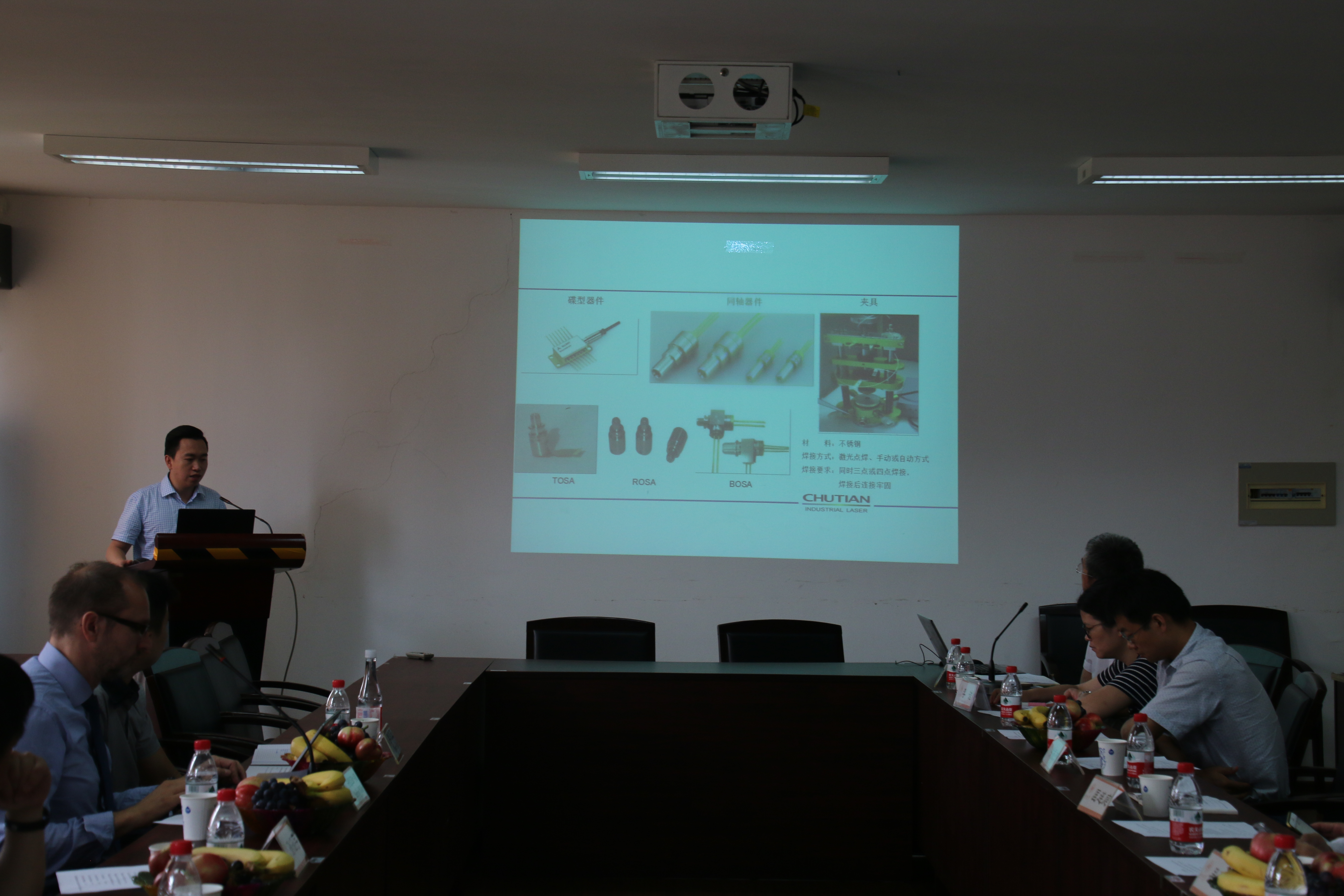 温州市科技局匡连庭副局长、德国通快激光技术有限公司总经理Andreas Weller先生、通快电子/医疗销售总监Royce Lee先生、武汉楚天工业激光执行董事孙涵宇女士、奔腾激光(温州)有限公司总经理吴让大先生、温州大学科技处洪振杰处长、开云体育 领导周宏明、李峰平、冯爱新、以及激光机工机器人浙江省重点实验室/科技部国际合作基地的相关老师出席了筹建会议。会议由温州大学激光与光电特色学科带头人冯爱新教授主持。
