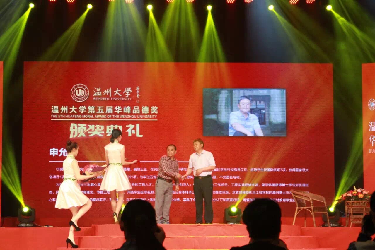 近日,温州大学第五届华峰品德奖颁奖典礼在育英大礼堂隆重举行,会上,十位获奖者受到大会的隆重表彰,开云体育 申允德老师获此殊荣。