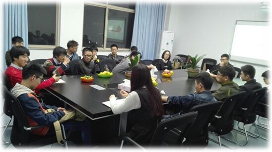 会议开始时主持人把五位研究生的考研学校及专业向大家逐一介绍,让大家对他们有初步了解。随后五位同学就复习方法、复习时间、复习重点、选报学校、复试面试、导师选择等问题与大家展开了讨论,朱昕宇同学就选报学校这一问题劝告要大家量力而行,实事求是,切勿眼高手低,根据自己实际情况出发。随后,方佳成同学就学习方法给大家做了分享—推荐同学们关注考研微博、网上视频学习等,给自己制定一个详细的考研学习计划。张建文学姐则向大家推荐报学习班,寻找战友一起奋战。一个好的战友会给你带来无限动力。而曹海涛则提出不要一味模仿他人的学习进度等,因为每个人的天资不同,要从实际出发,最后也劝解大家要劳逸结合,不要给自己太大压力。在整个交流过程中大家边吃水果边讨论交流,气氛轻松愉悦,备考的同学积极提出自己的疑惑,而五位学长学姐也耐心的给大家解答。