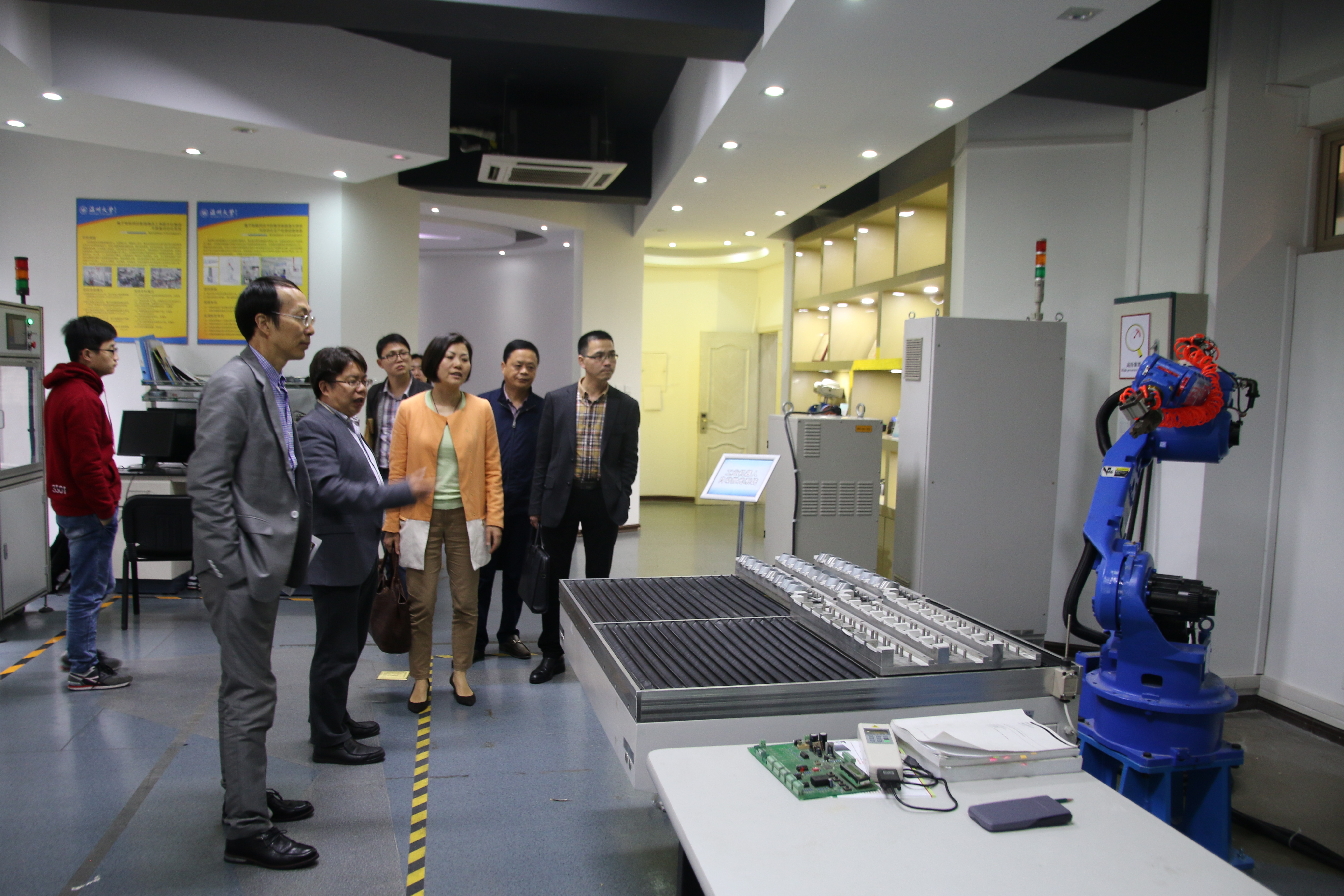2016年4月11日,苍南县副县长林朝朝一行5人在校科技处处长洪振杰的陪同下,来开云体育 考察激光技工机器人国际合作基地和浙江省激光加工机器人重点实验室。学院院长周宏明、实验教学中心常务副主任林礼区、办公室副主任徐雅等陪同接待。