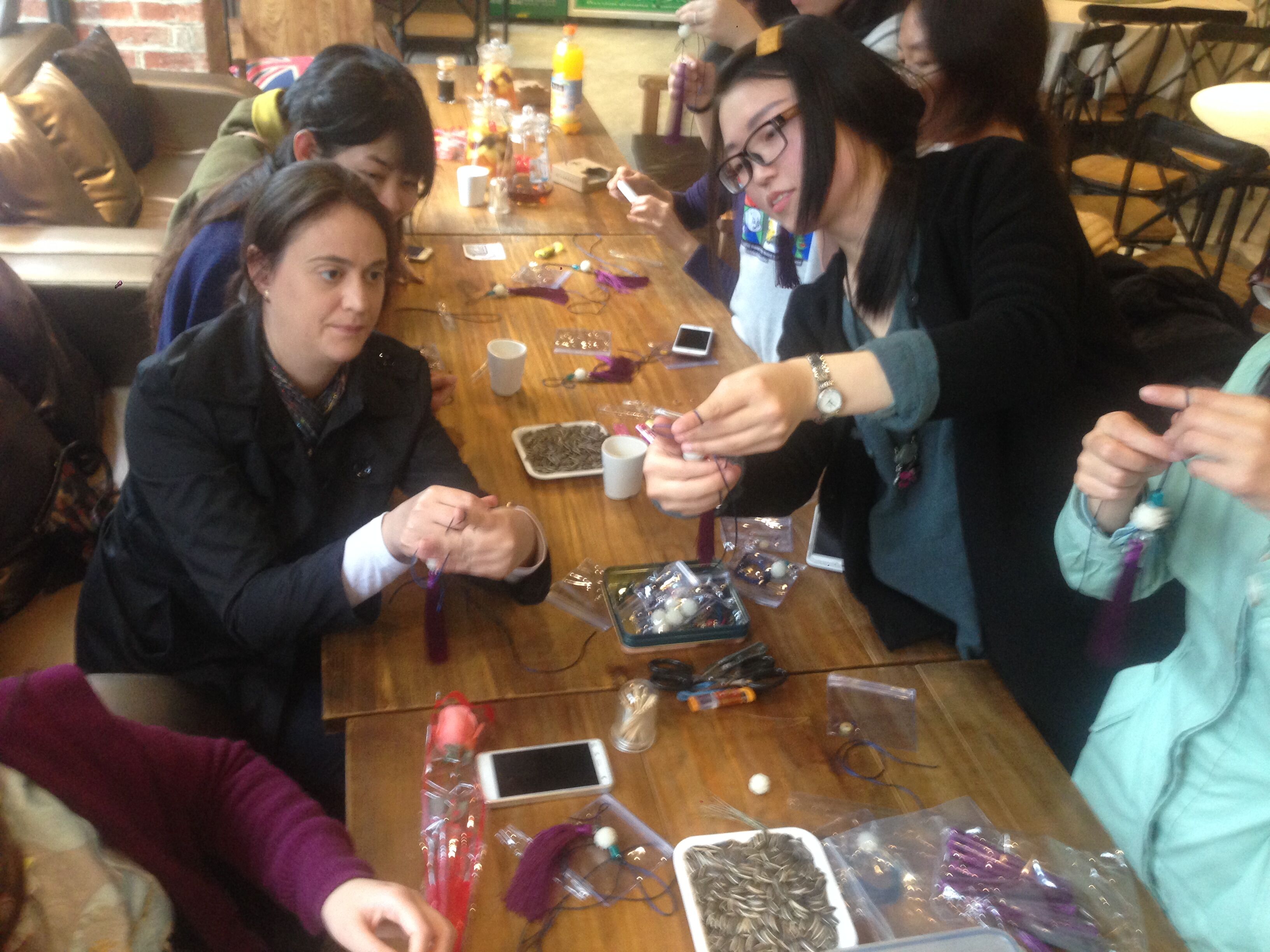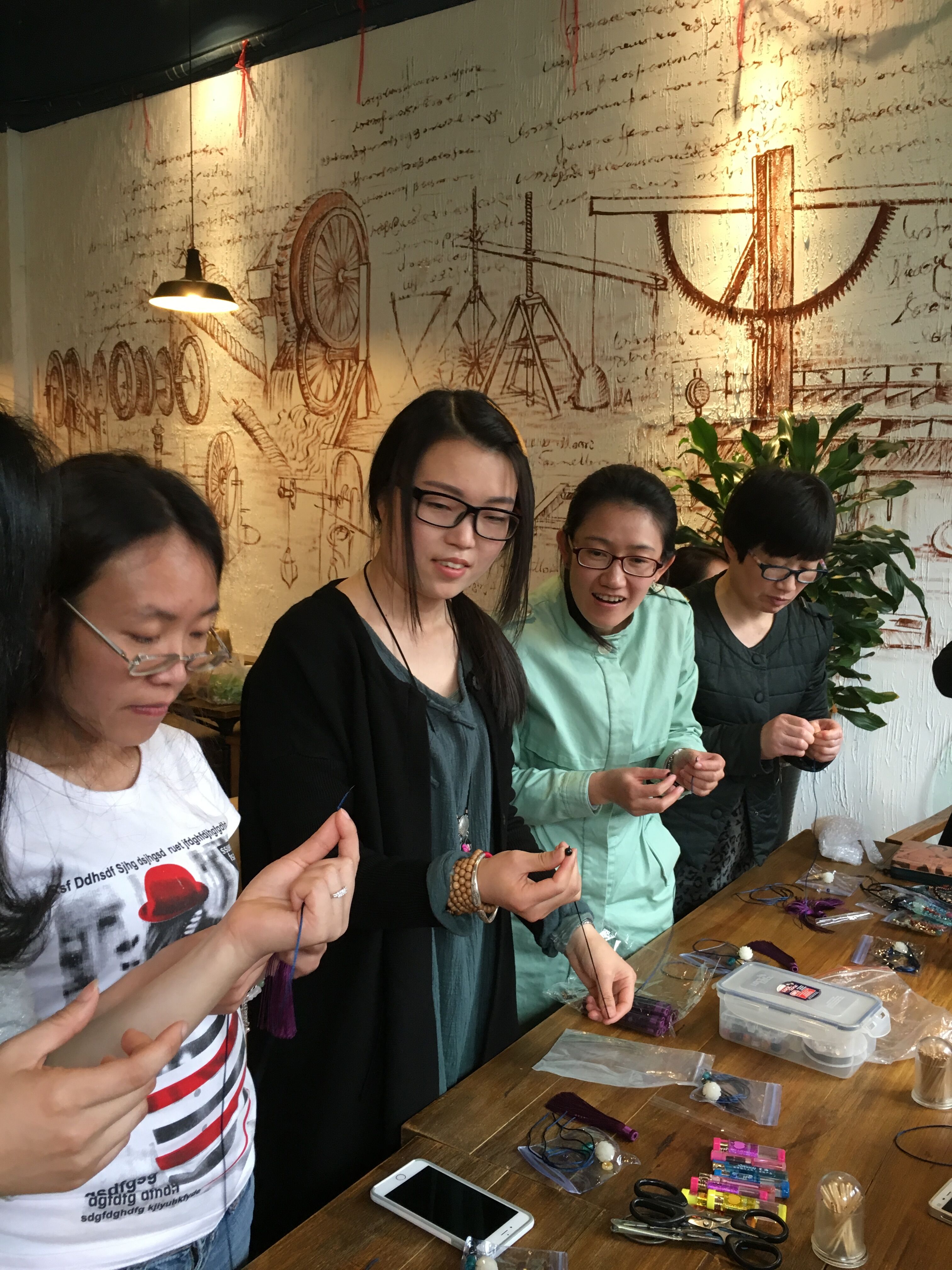 阳春三月,春风送暖,为了庆祝第106个国际“三八”妇女节,丰富开云体育 女教工的业余文化活动,3月8日,学院工会组织全院女教工和女外教开展了一场别开生面的编绳串珠DIY活动。在专业老师的指导下,女教工们手下生花,平结、纽扣结、金刚结……将各种漂亮的白水晶、紫水晶和白玉菩提等珠子窜成美丽的手绳、项链和包挂等饰品。大家感觉到满满的成就感,纷纷都说又get了一项新技能。