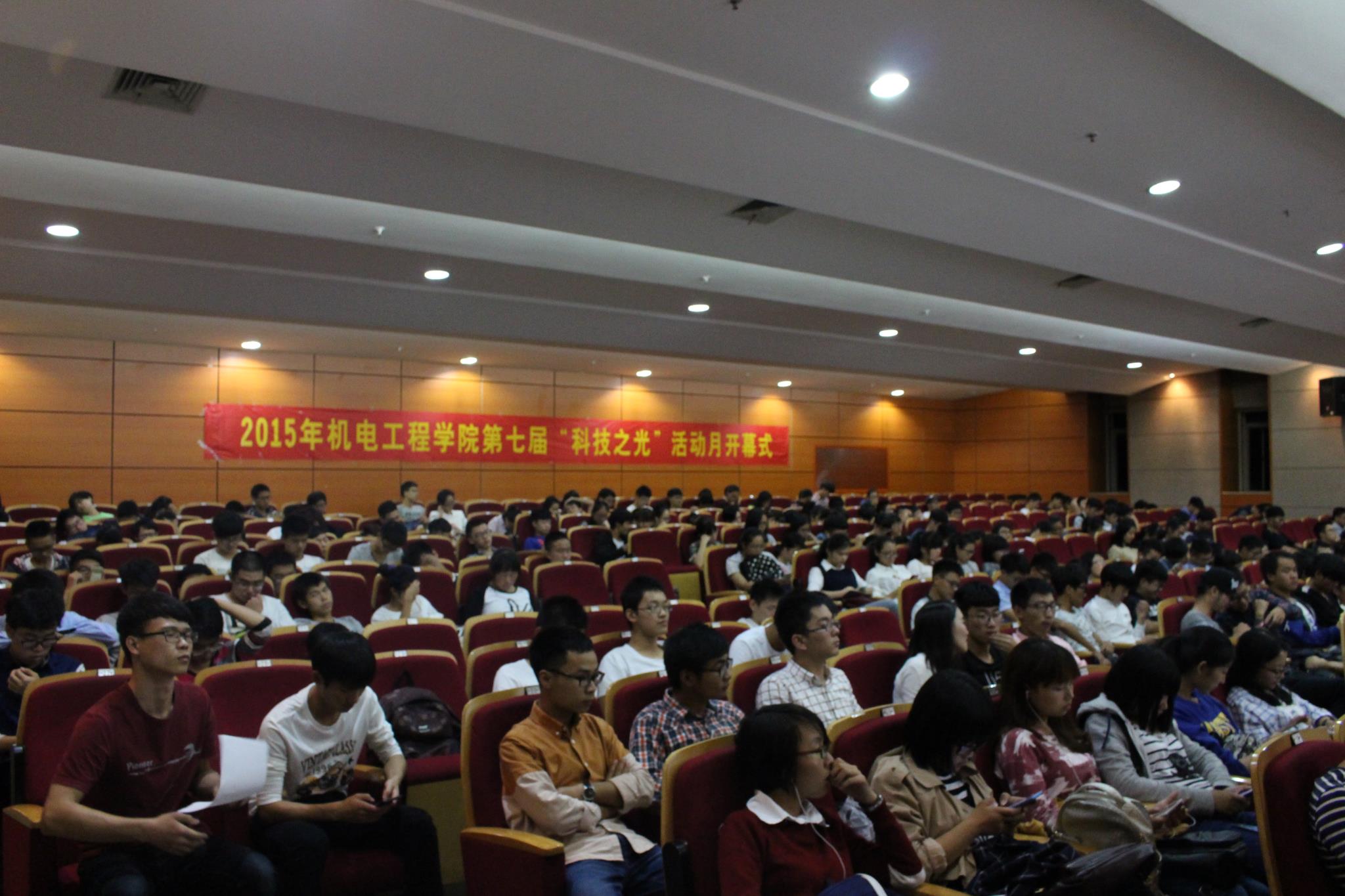 2015年10月21日晚6:30,开云体育-开云体育app下载 第七届“科技之光”活动月开幕式在南校区雁山厅隆重举行。校党委委员、宣传部部长潘玉驹,校团委书记屠霁霞,开云体育 院长周宏明,学院党总支副书记李密,学院辅导员孙双、林梅,教师代表陈希章、李勇出席了开幕式。学院200多名2015级新生参加了开幕式。