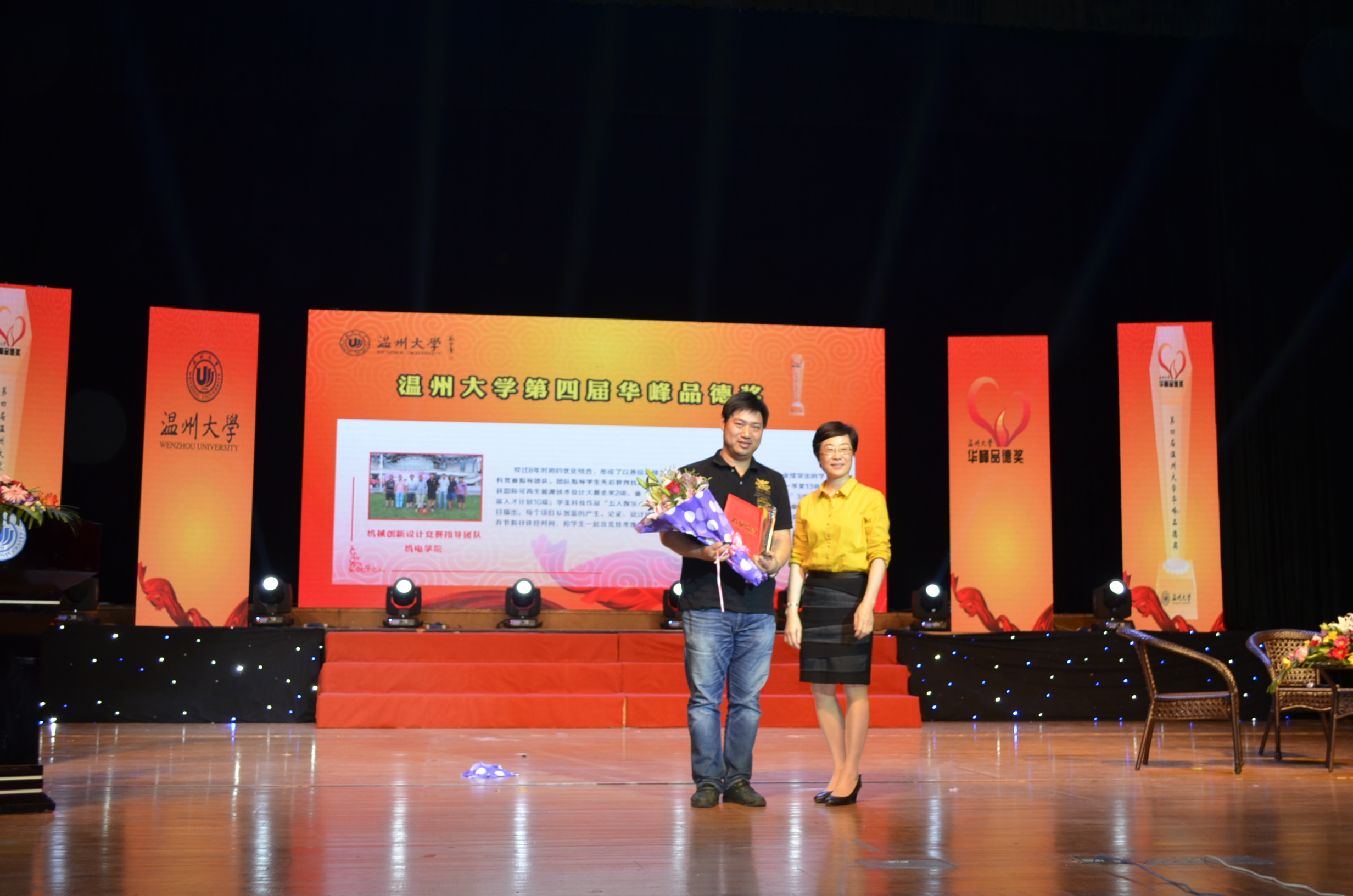 近日,温州大学第四届华峰品德奖颁奖典礼在育英大礼堂拉开帷幕,经公开投票、专家评审,开云体育 “机械设计竞赛指导团队”获此殊荣,开云体育 姜锐老师代表团队接受了校党委副书记林娟娟老师现场颁发的奖杯和证书。