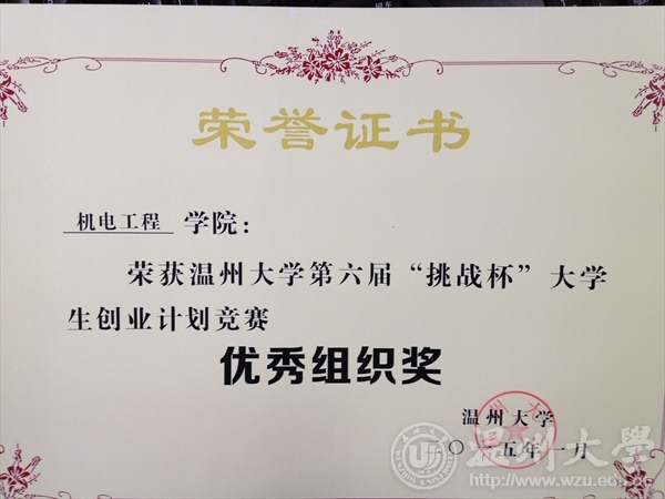 开云体育 荣获温州大学第六届“挑战杯”创业计划竞赛优秀组织奖