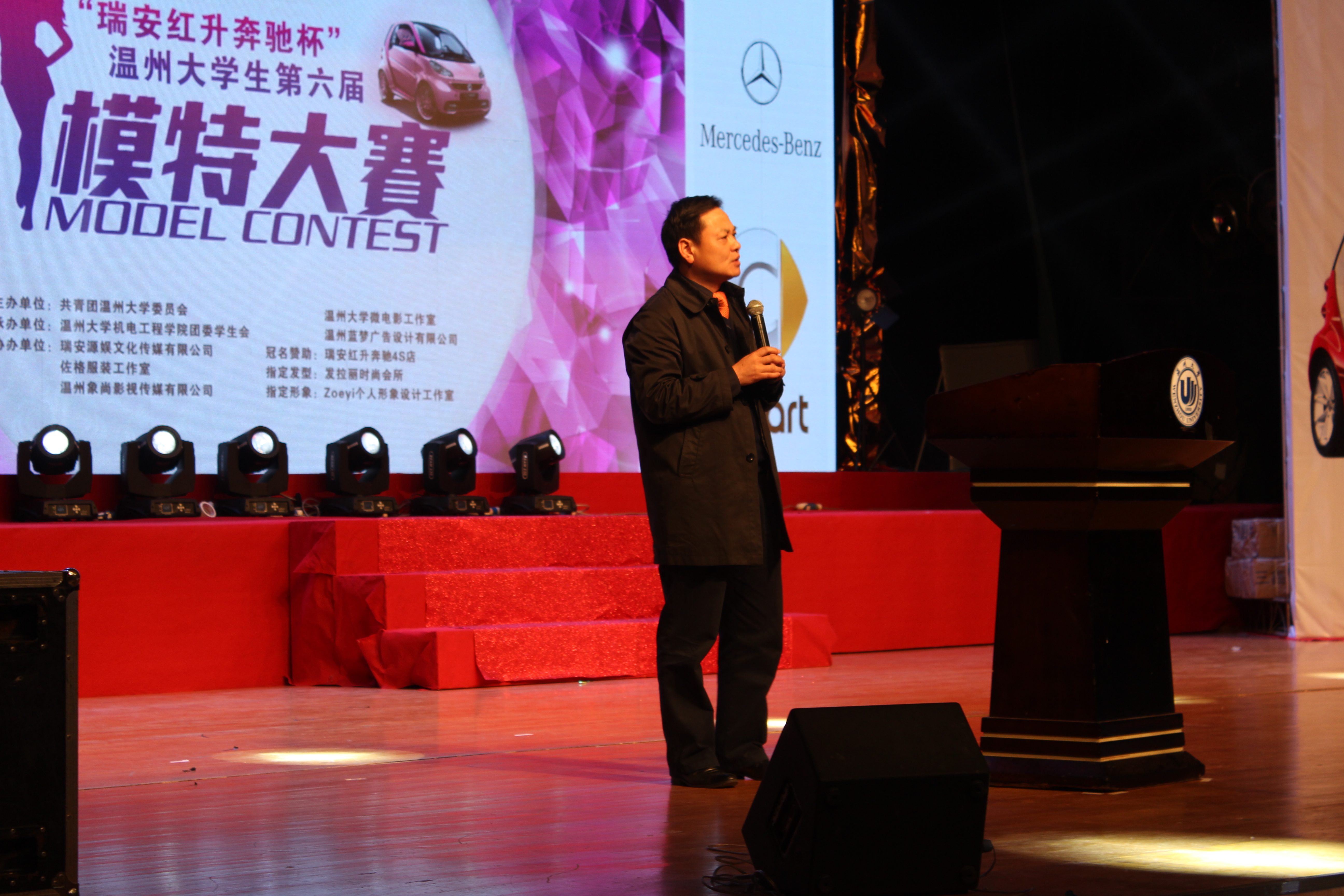 瑞安红升奔驰徐晓萍总经理致辞,她指出,温州大学是一所极富创造力和生命力的高等院校,作为本次活动的冠名赞助商,瑞安红升奔驰一直秉承“驰骋不息、志在高远”的理念,希望在未来能够与温州大学建立更紧密的联系,为温州大学城全体教职工、在校大学生、新近毕业生及其家属在成功之路上助梦星徽!