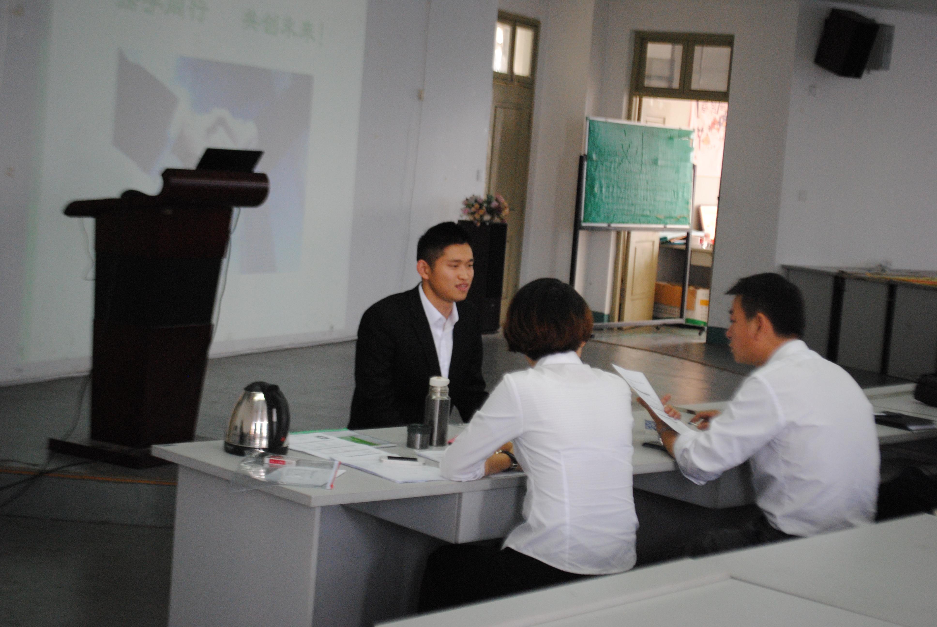首先,人寿财险人力资源部马泽萍经理进行宣讲,介绍公司概况、发展历史、浙江省分公司基本情况、机关所组织构架及此次招聘的招聘岗位等。随后进行现场问答,毕业生们人寿财险公司自身及此次招聘的要求、发展空间等方面提出问题,面试官给与相应的解答。最后为现场面试环节,40多名有意向的毕业生依次轮流进行面试,其余毕业生们则在教室有序等待。招聘会现场气氛热烈而融洽,同学们和企业的人员进行了良好的互动,双方都表示对此次招聘会相当满意。会后,人寿财险表示,此次招聘取得满意效果,将继续加强与开云体育 的合作,实现共同发展。