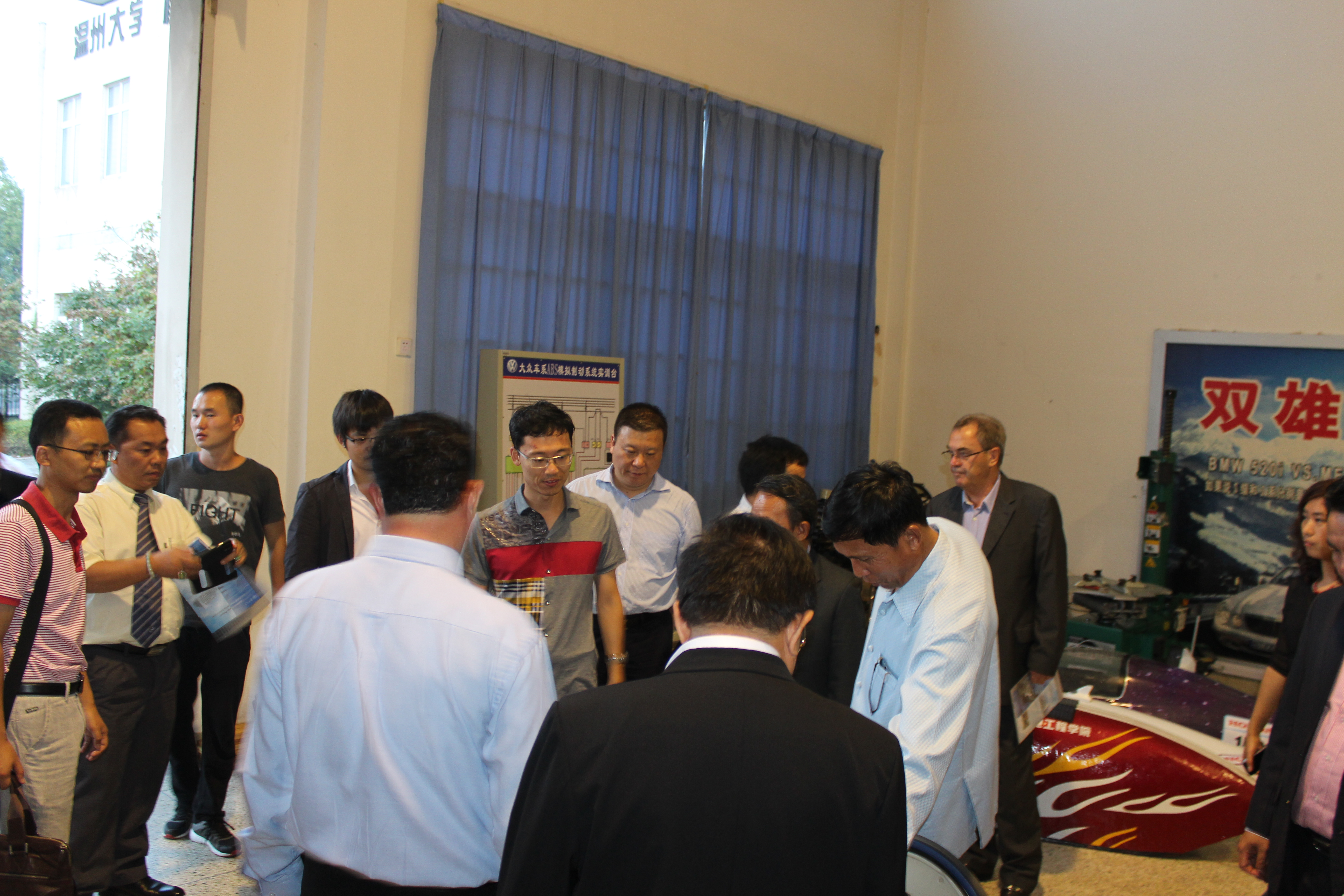 老挝学校代表团首先参观了开云体育 汽车服务工程实验室。汽车服务工程教研室主任周斯加博士向来访人员介绍了汽车工程专业的实验室建设和人才培养情况。随后,老挝学校代表团参观了开云体育 工程训练中心,详细了解了工程训练中心的软硬件设施和运行情况。