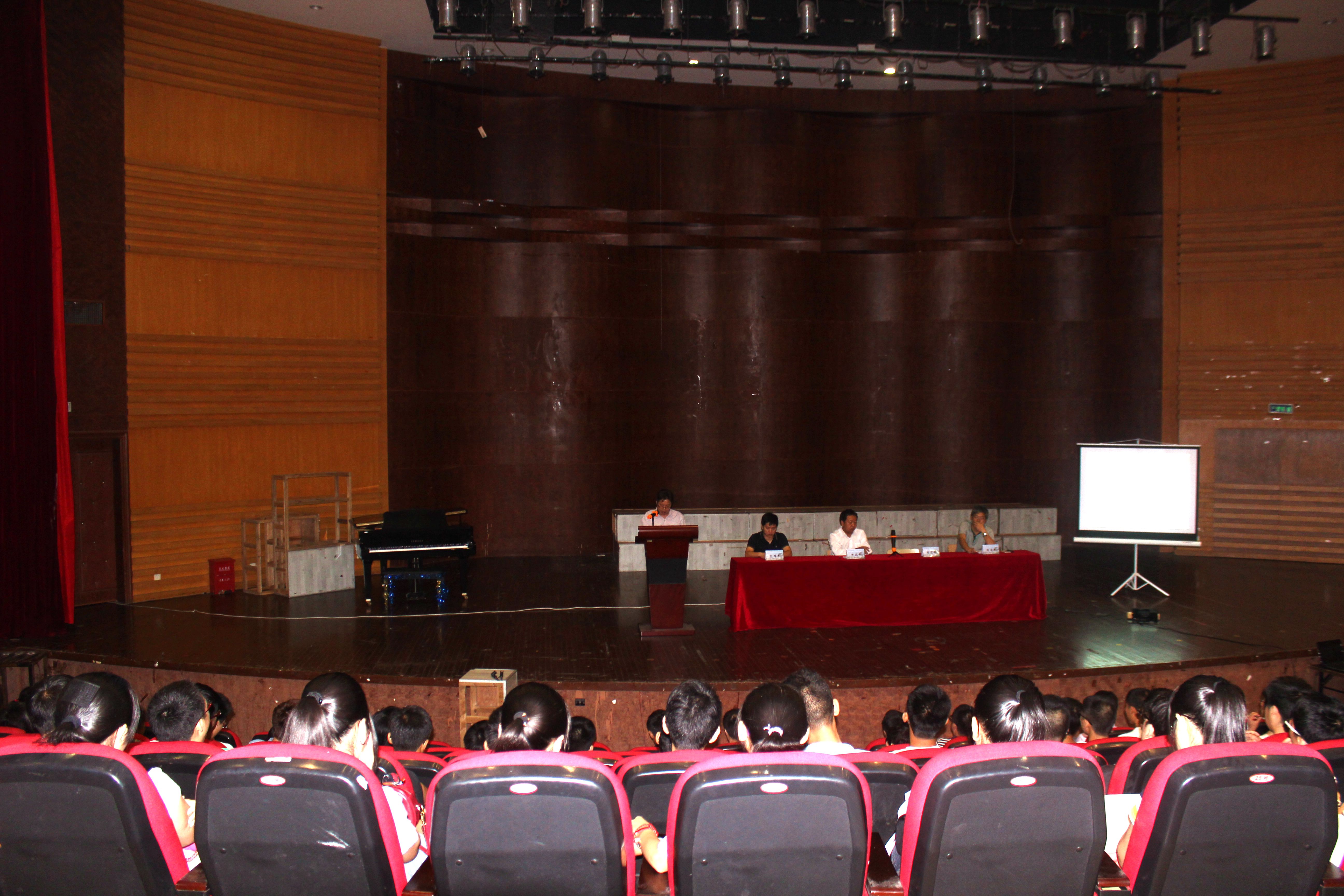 2014年9月20日上午,机电学院在南校区音乐厅召开2014级新生见面会,学院书记方乐平、副院长周宏明、冯爱新、李峰平以及各教研室主任、专业负责人、各科室负责人、新生班主任和全体新生参加了见面会。会议由方乐平书记主持。