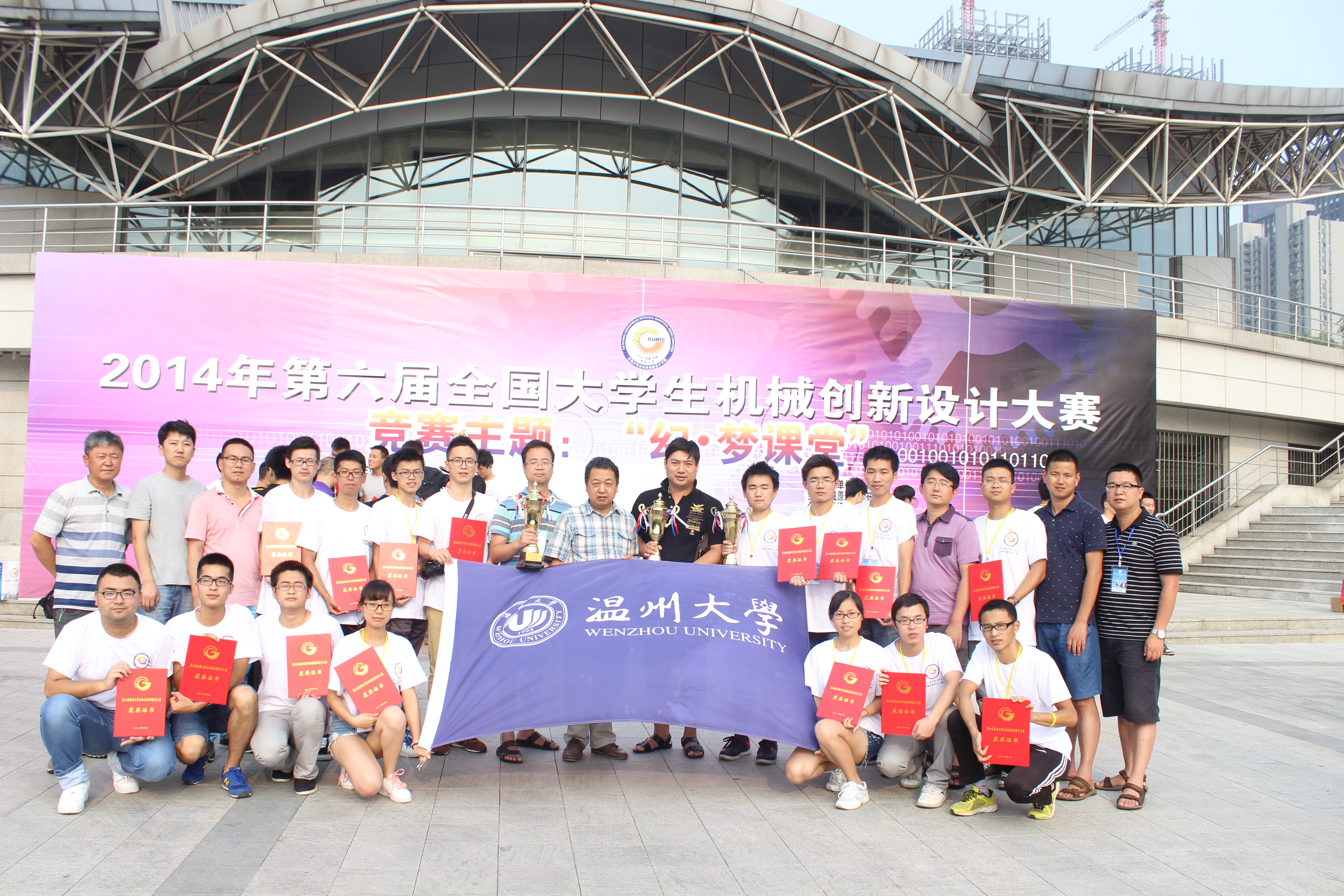 本届大赛于7月28日至30日在辽宁省东北大学赛隆重举行。以“幻•梦课堂”为主题,内容为“教室用设备和教具的设计与制作”,学生可根据对日常课堂教学情况的观察,或根据对未来若干年以后课堂教学环境和状态的设想,设计并制作出能够使课堂教学更加丰富、更具吸引力的机械装置。本次大赛共吸引全国28个省、市、自治区包括清华大学、浙江大学、上海交通大学、哈尔滨工业大学、华中科技大学等612所高校的作品共计4180项参加。其中浙江省共有50所高校的352件作品参赛 ,最终31件作品获得参加全国赛的参赛资格,我校有3件作品入围全国赛。