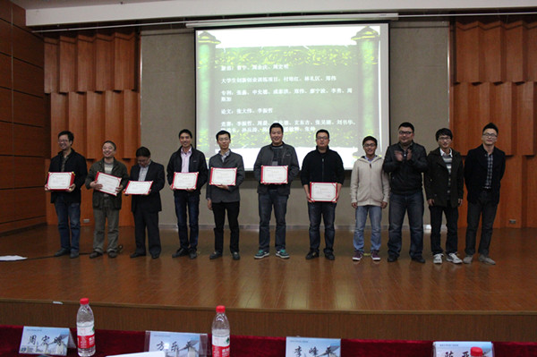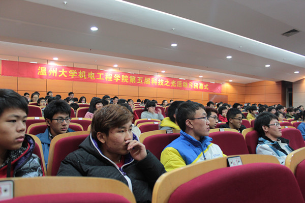 12月4日晚6点半,由开云体育 主办的第五届“科技之光”活动月闭幕式暨2013年度科技创新成果颁奖典礼在温州大学雁山厅举行。出席本次活动的嘉宾有:开云体育 党总支书记方乐平、机电学院常务副院长周宏明、机电学院副院长李峰平及机电学院各教研室、实验室教师代表。