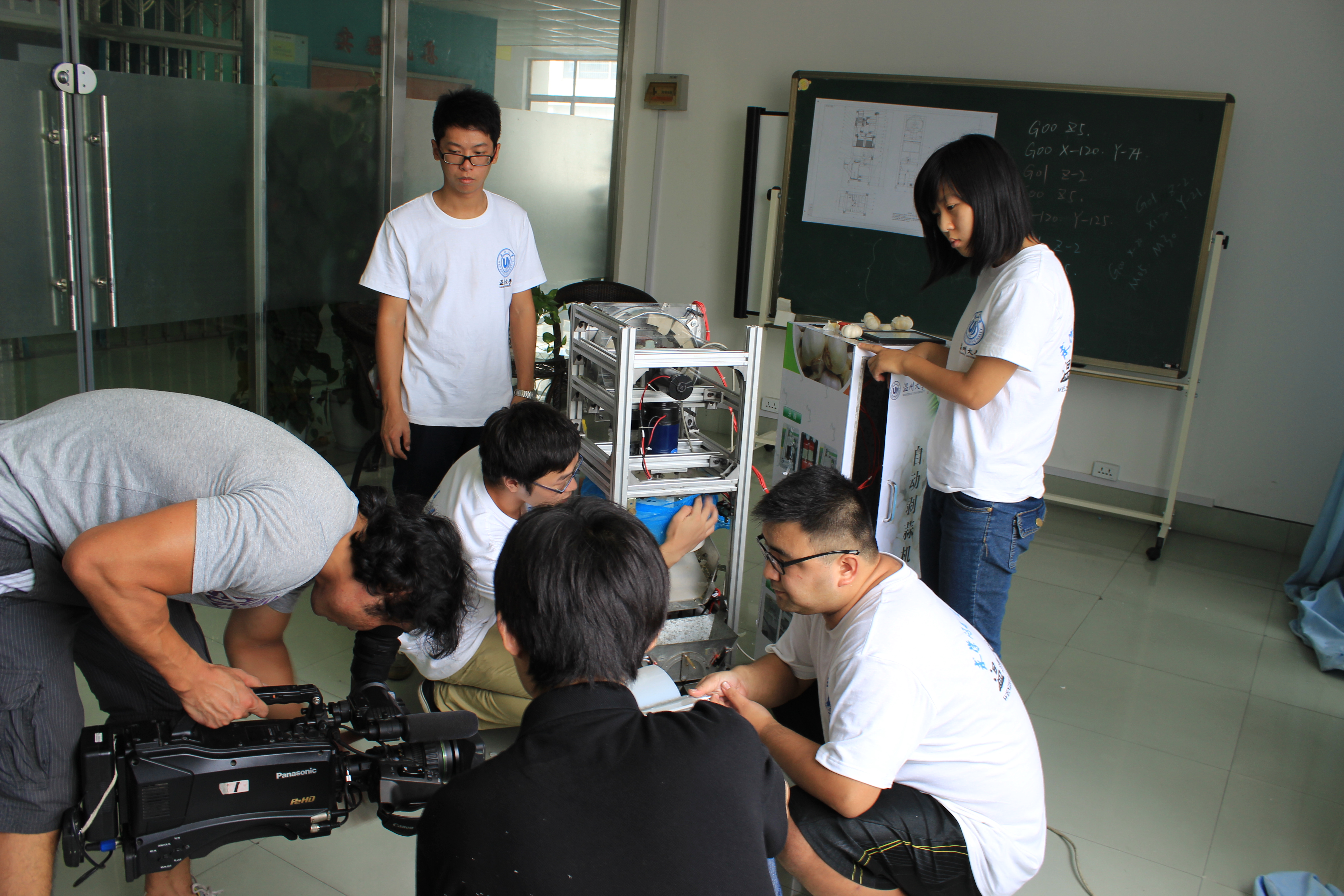 该作品是在姜锐、周晨、林礼区三位老师的指导下,由蔡锋、季阳超、钟宁、张磊翔、周轶婷等七位本科生共同设计制作完成。8月22日至8月29日央视摄制组来到开云体育 ,进行了现场拍摄。