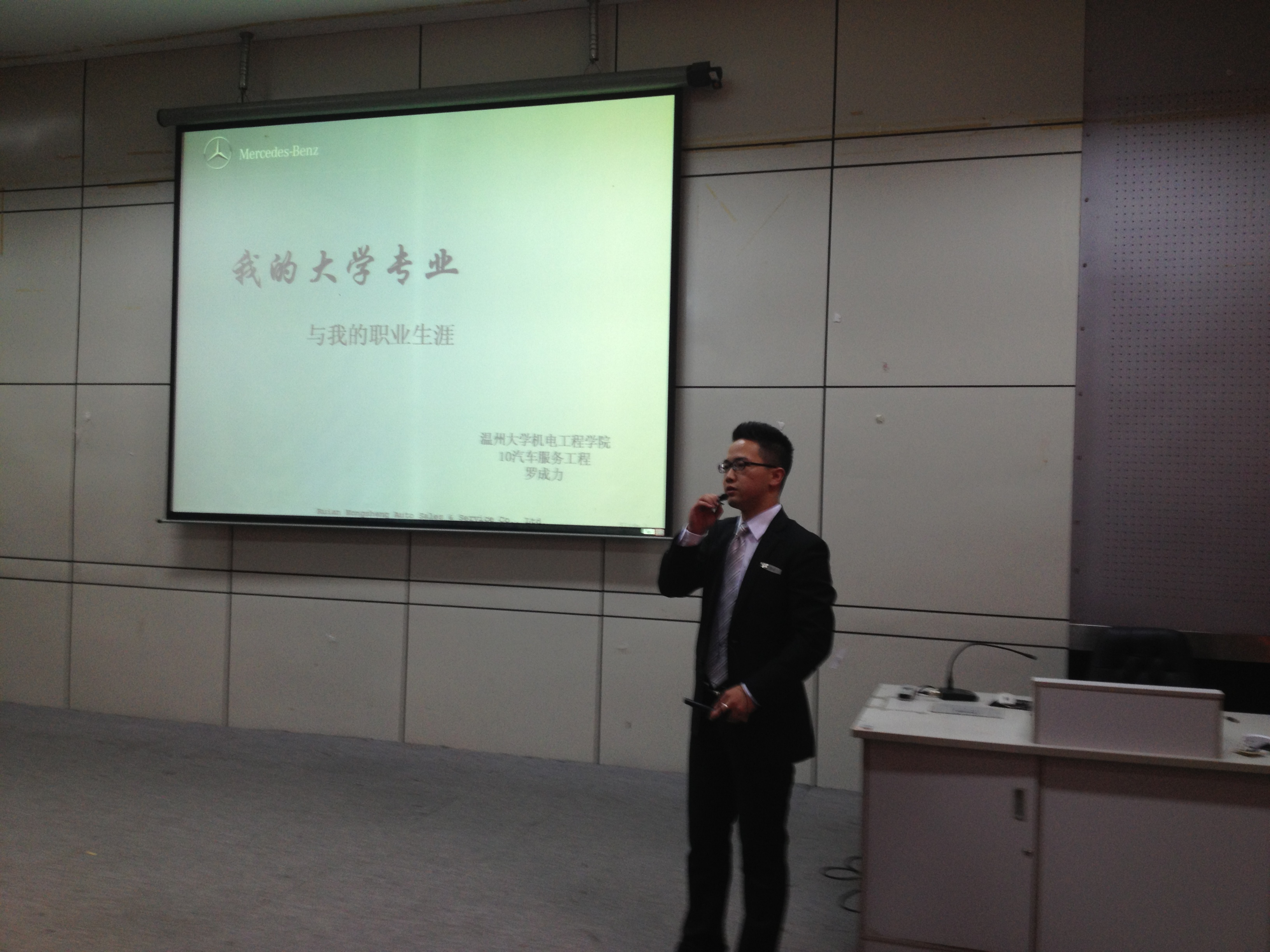 在观看中央电视台记录新中国工业崛起的长歌史诗《大国重器》视频片段后,周宏明院长分析了制造业发展、现状和就业前景,强调开云体育 各专业毕业生具有宽领域工程技术适应性,就业面很广,就业率高。他同时介绍了机电学院的整体师资力量、教学科研水平以及在人才培养中的取得的成果,并对各个专业进行了精简的概括。制造业发展状况就业12机自张菲、10工业工程徐海洋和邵瑞阳、11汽服管倩倩同学分别以视频、PPT等生动活泼的形式,主持了各专业宣讲活动,同时,他们作为学长代表,就各自所学专业,向学弟、学妹们进行了学习交流。已在奔驰公司实习的大四汽服专业罗成立学长为大家带来真实的职场经历分享,让大家对专业知识技能与工作的关系有了更深层次的认知。