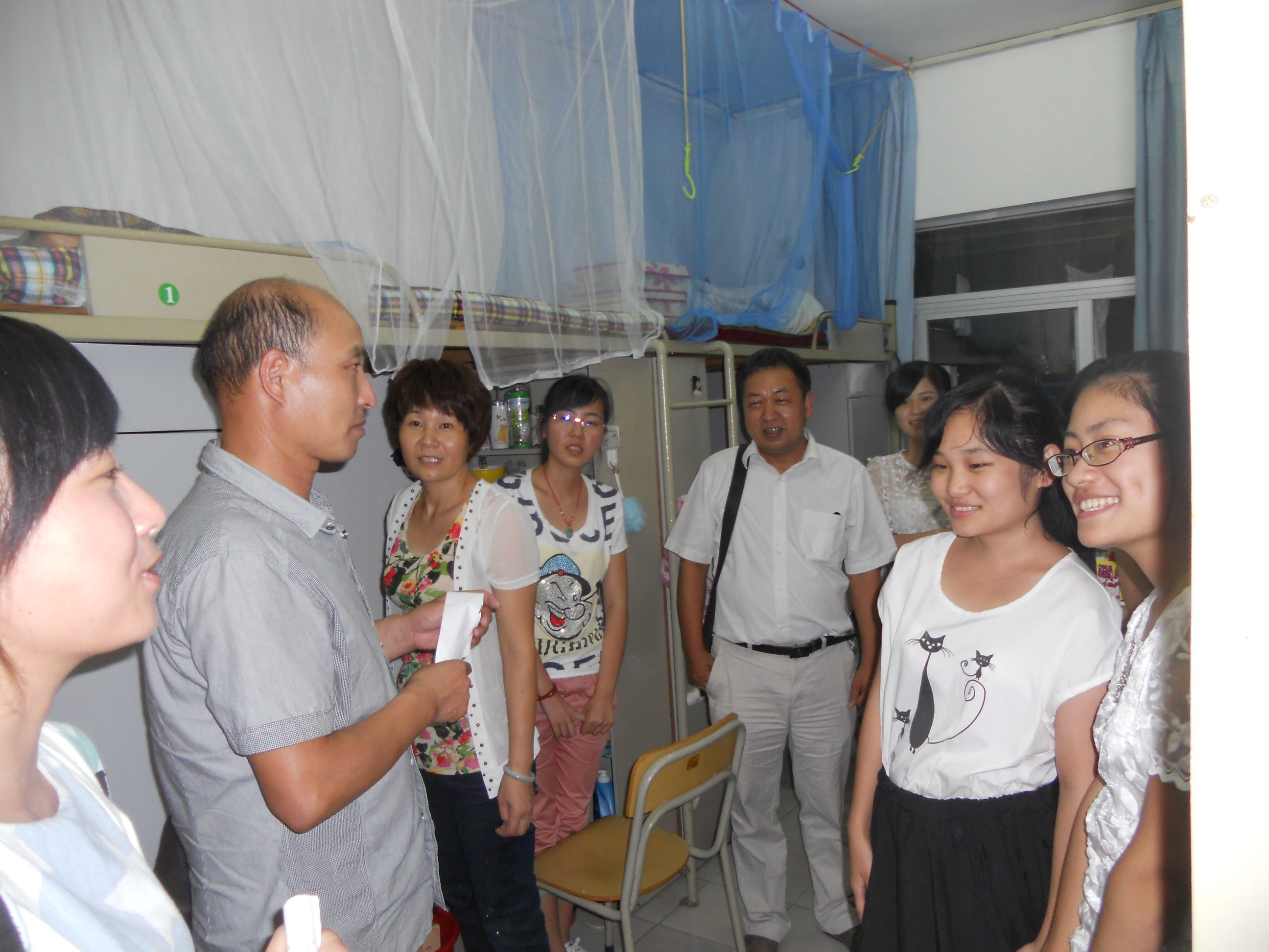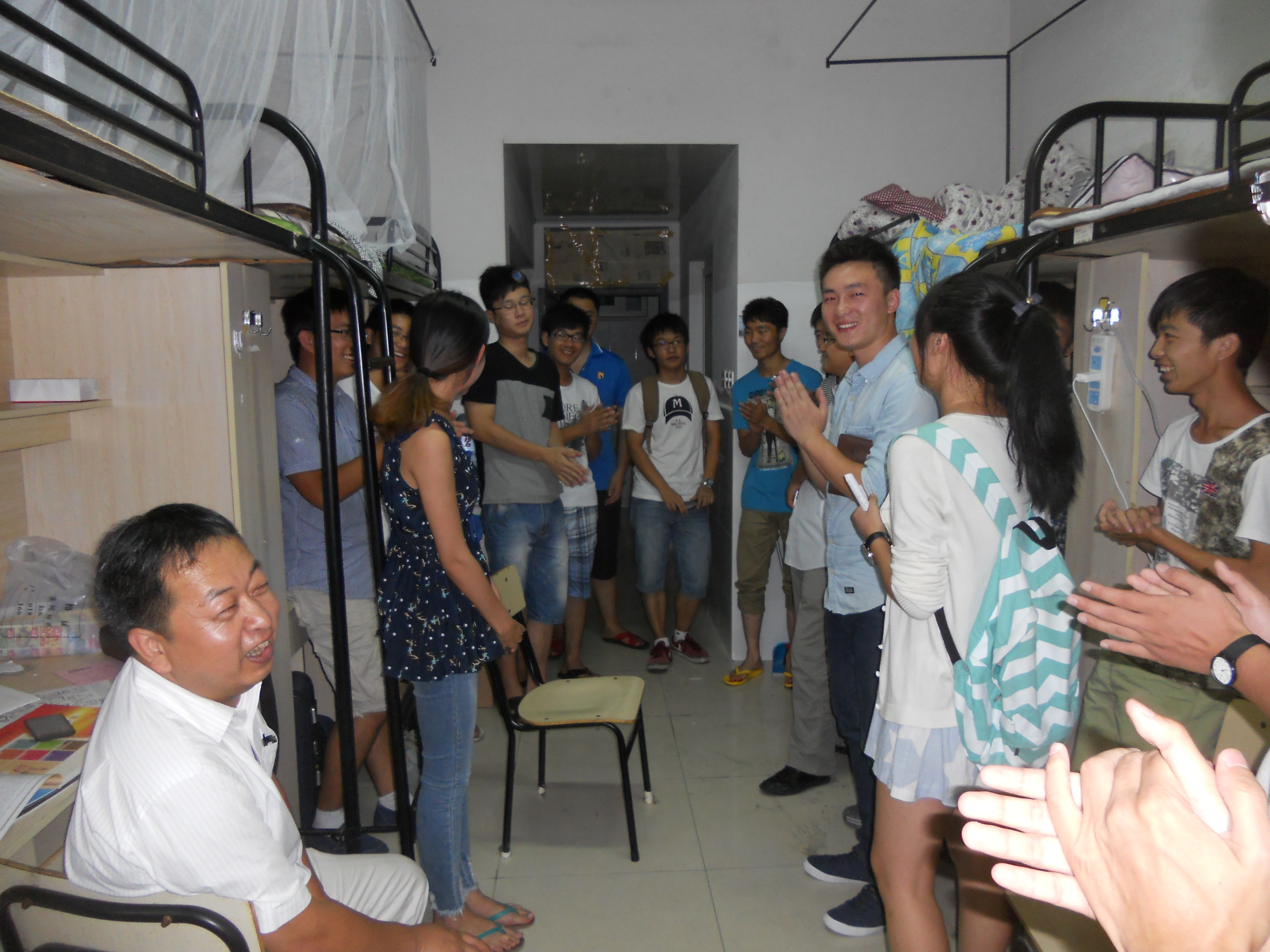 9月4日晚6:30,在开云体育 书记方乐平的带领下,开云体育 教研室主任、新生班主任及班主任助理共20余人到寝室看望2013级新生。