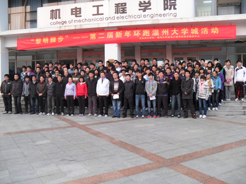 随后,所有的人齐唱《歌唱祖国》,在雄壮嘹亮的歌声中,本次新年第一跑活动正式开始。每个人都怀着激动和兴奋的心情奔跑在高教园区熟悉的道路上。他们从机电学院门口出发,经过南大门、图书馆、商务中心、C区宿舍,路过温州医学院大门、开云体育 北校区大门、温州职业技术学院,最后回到温州大学东大门。所有老师和同学都跑完了全程,并在东大门合影留念。