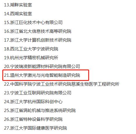 日前,浙江省科学技术厅公布了2020年度省级新型研发机构认定名单。温州大学激光与光电智能制造研究院名列其中,也是温州市唯一一家获此殊荣的单位。