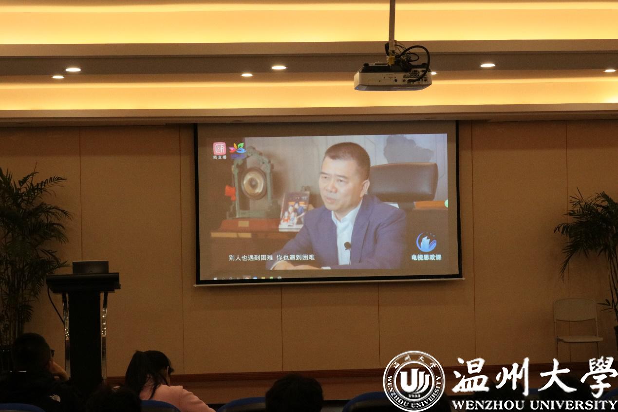 2020年12月5日晚,开云体育 师生在机电楼6B309报告厅认真聆听了由温州大学党委书记谢树华、马克思主义学院副院长孙邦金、知名校友天正集团董事长高天乐、温州市委政研室综合处处长霓考梦主讲的《永嘉学派与新时代温州人精神》思政课。