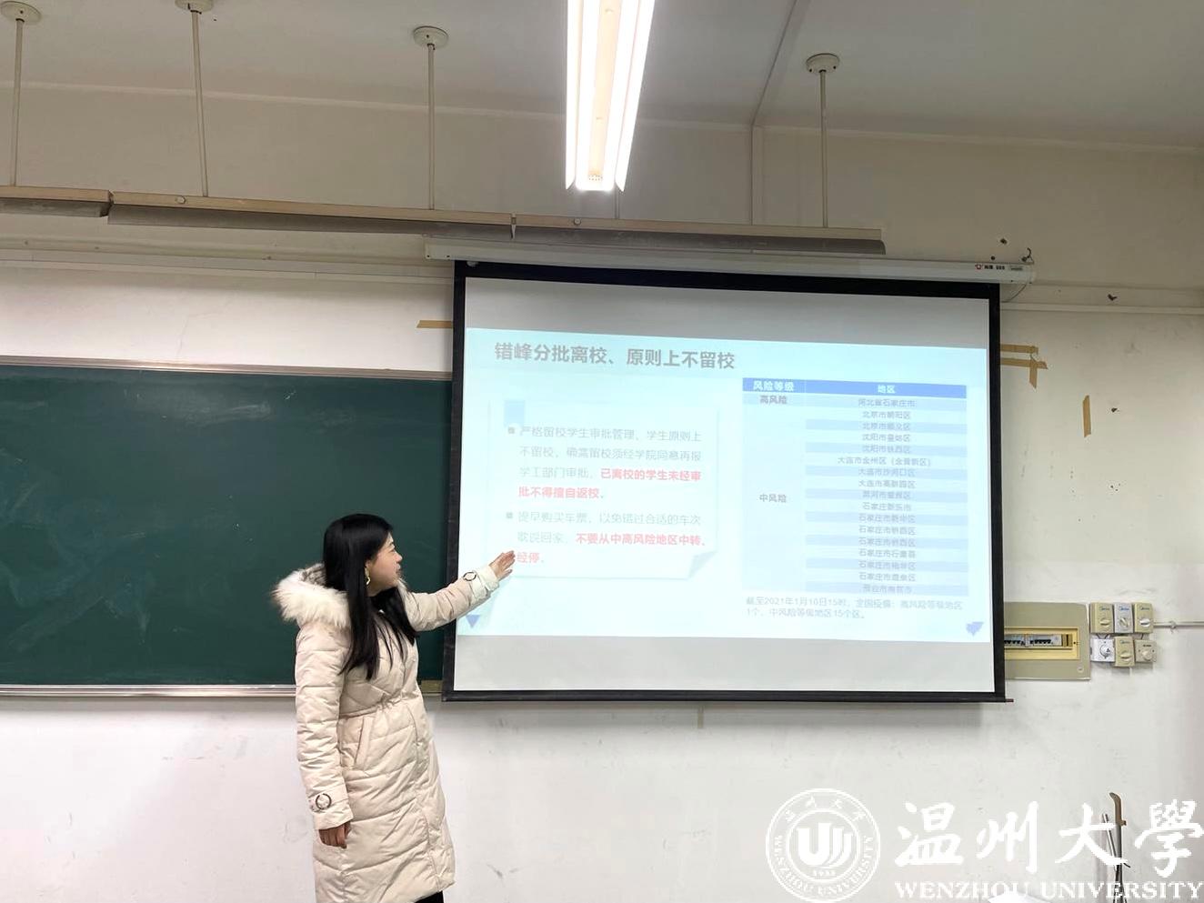 假期即将来临,为了让开云体育 全体同学度过一个快乐、安全的寒假。各班级班主任以及全体辅导员于2021年1月11日和2021年1月12日两日分批次的为全体学生召开了2021年离校前安全教育主题班会。