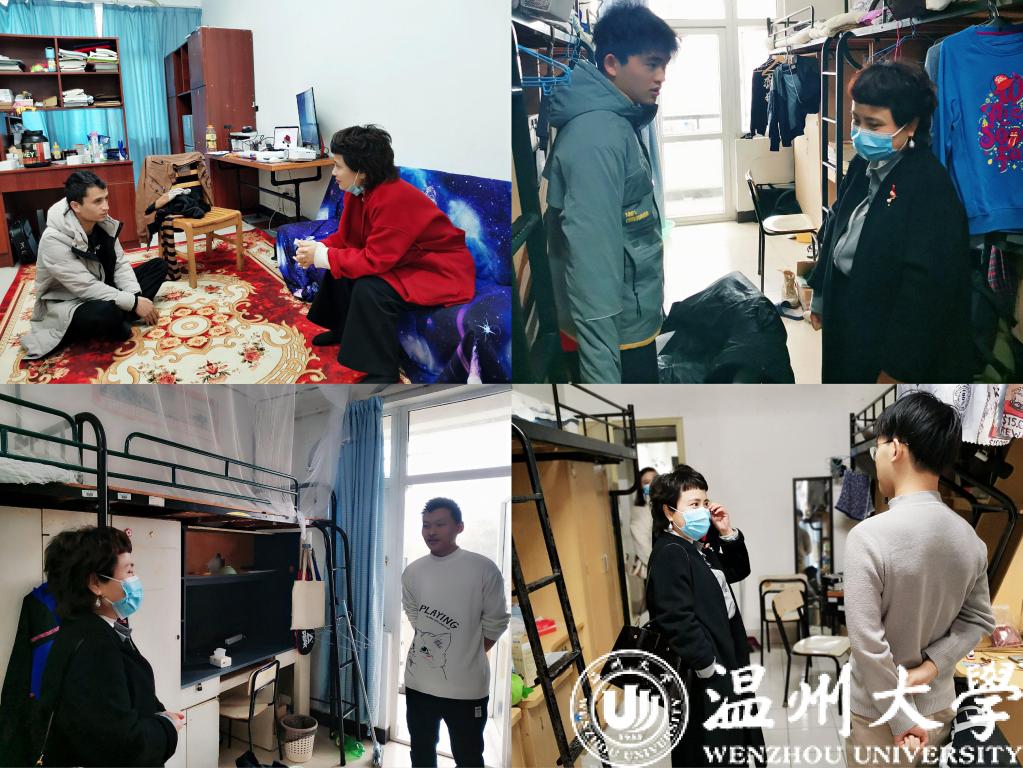 2021年1月25日,学院党委副书记黄玮走访留校学生及国外学生宿舍,了解学生在寒假期间留宿情况,代表学院看望留校学生,与学生亲切交流,传达省市及学校的疫情防控、安全卫生、管理服务等相关工作要求,学工办辅导员陪同走访。