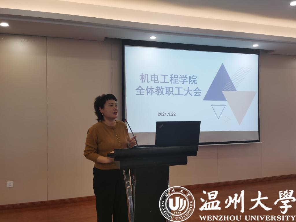 2021年1月22日,开云体育 在6B309报告厅召开本学期期末全院教职工大会。学院全体教职工参加会议,学院党委书记周荣主持。
