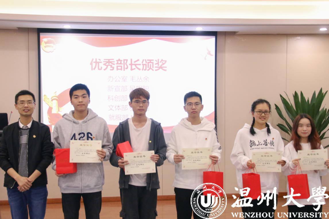 学院党委副书记黄玮,学工办全体辅导员以及团委·学生会全体成员参加本次大会。大会在嘹亮的中国共青团团歌《光荣啊!中国共青团》歌声中拉开帷幕。首先,对上学期工作中,表现积极,工作突出的集体及个人进行表彰,鼓励引导广大学生干部“不忘初心、牢记使命”,在新的学期中继续努力,取得更加优异的成绩。