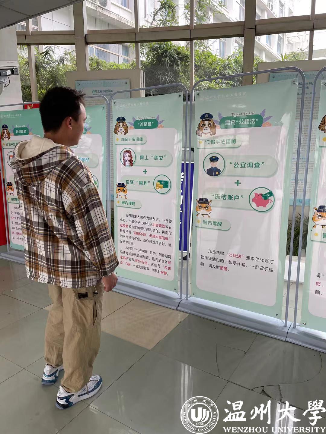 学院领导及各年级辅导员利用下班、周六周末及节假日等时间走访学生寝室,加强学生反诈防诈安全教育宣传工作的常态化,引导学生使用“温警在线-在线分享验真”小程序,提高自我安全防护意识。