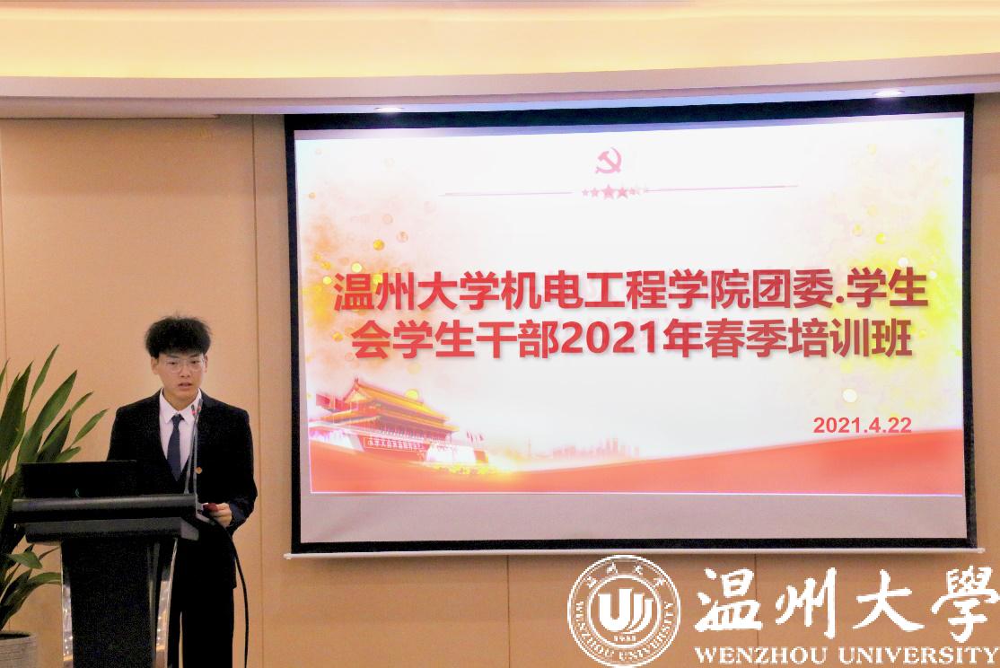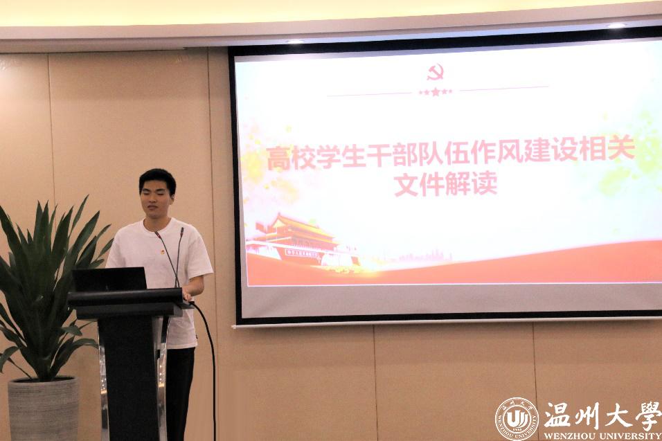 辅导员雷宏宇老师热情分享了自己大学期间的团干经历以及企业工作经历,希望广大学生干部珍惜自己的身份,把握机会,锻炼自己,获得更大的成长。