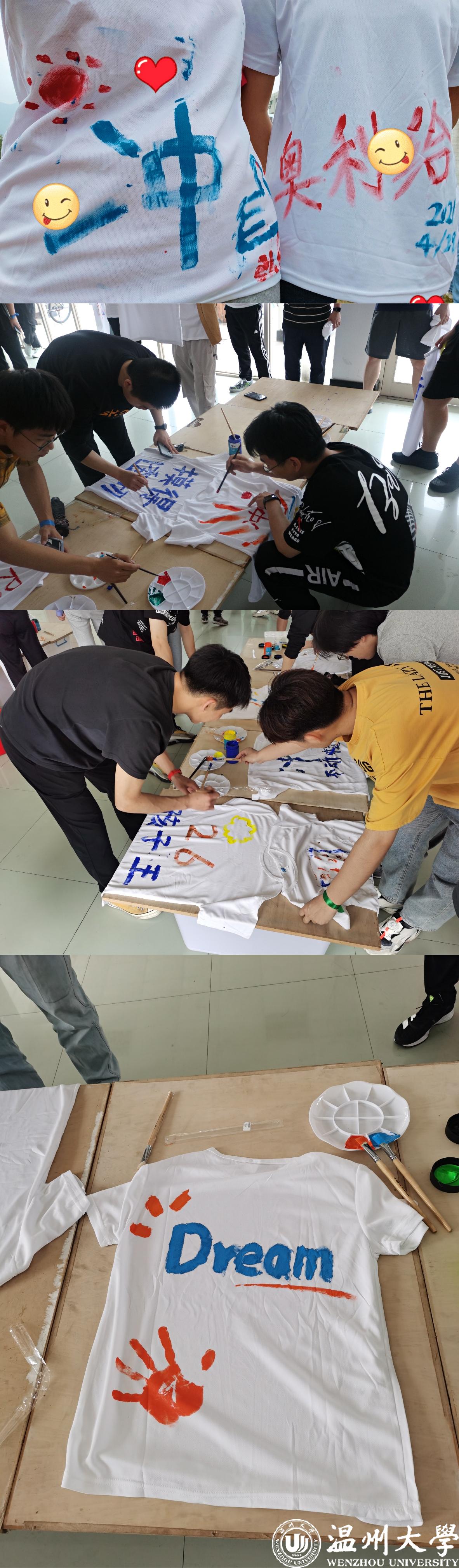 热情澎湃的同学们纷纷在机电楼大厅集合,排队领取白色T恤和手腕彩带,并以涂鸦的方式专属设计了自己的衣服的图案,将自己对于未来的期许寄托于七彩颜料之下。身穿彩色的衣服,心里装着梦想,共同为青春奔跑!