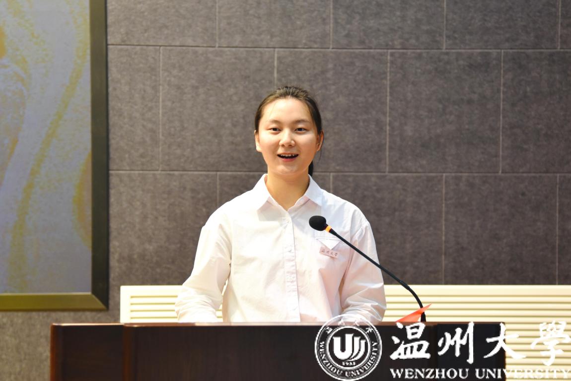 其次,新生班主任、各班代表上台,班主任为新生佩戴温州大学校徽,赠送学生手册和笔记本,期望学生能在未来的学习生活中秉承“求学问是,敢为人先”的校训。新生代表也贴心的为班主任提前送上教师节的鲜花,浓浓师生情。