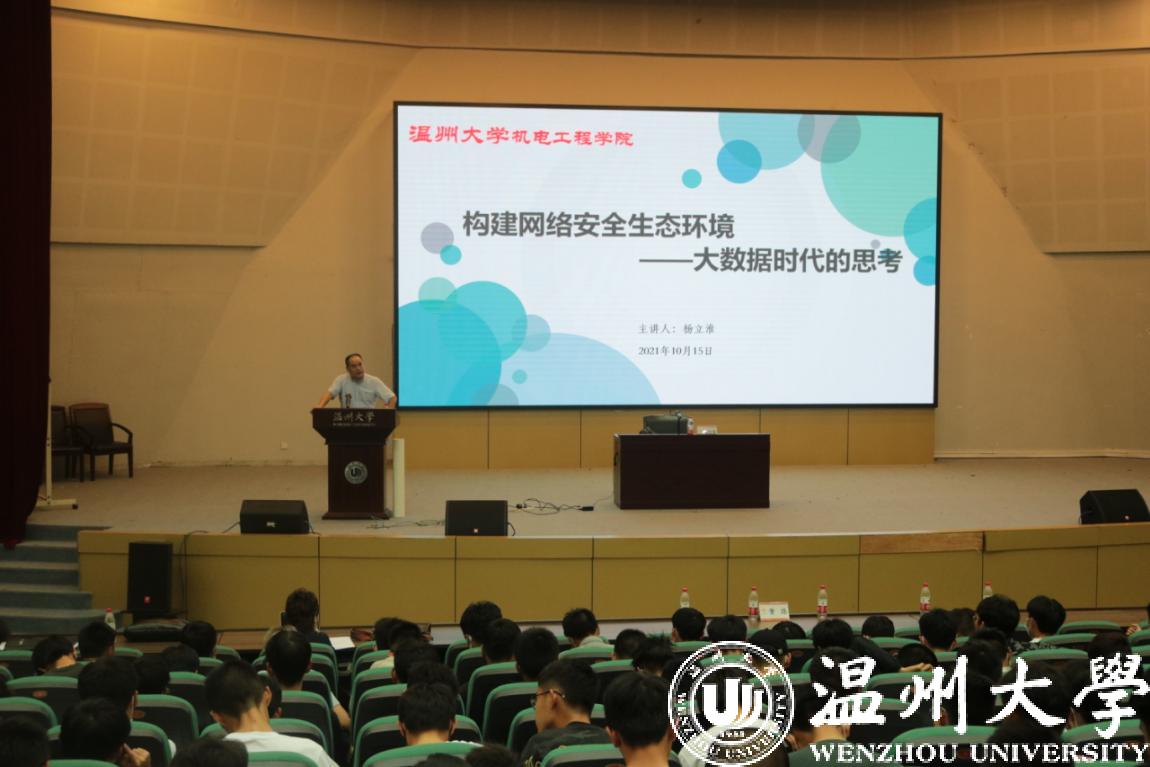 当下正值我校网络安全周,为了增强同学们的网络安全意识,提高运用网络能力,筑牢网络安全防线,开云体育 特邀请校纪委副书记杨立淮老师于10月15日晚,在教师教育学院报告厅开展了主题为“构建网络安全生态环境––大数据时代的思考”的讲座。我院21级全体本科生,研究生参加学习。