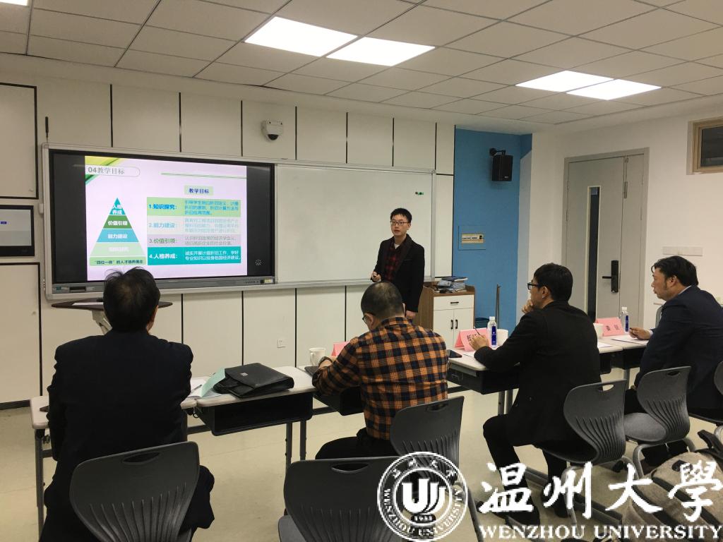 为进一步深化课堂教学改革, 打造魅力课堂, 提高开云体育 教师课堂教学技能,根据学校工作部署安排, 开云体育 组织开展了2021年教师课堂教学竞赛暨温州大学第三届课堂教学竞赛选拔赛。经过各专业系遴选,推荐出陈一镖、张祥雷、綦法群、邵梁四位教师参加院级选拔赛。 11月10日下午,参赛教师以说课试课的形式进行了现场教学比赛,比赛特别邀我校方均斌、折延东、杨万铨等三位在教育学和课程教学方面的资深专家担任评委,学院副院长姜锐老师主持比赛。